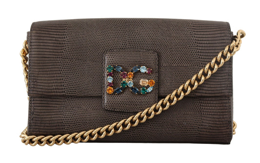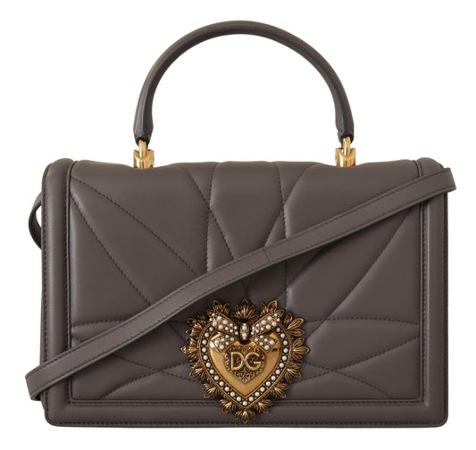 Dolce & Gabbana Gray Leather Nappa Small Shoulder Strap DEVOTION Women Bag