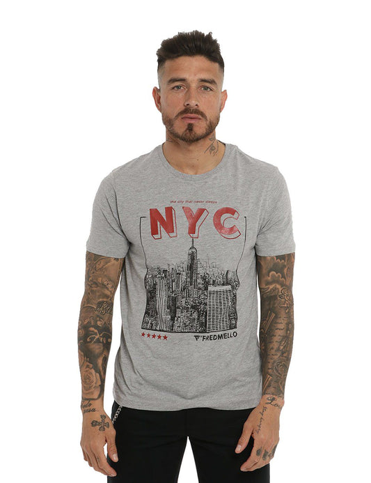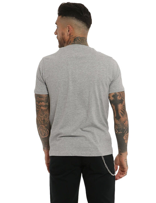 Sleek Gray Round Neck T-Shirt with Logo Print