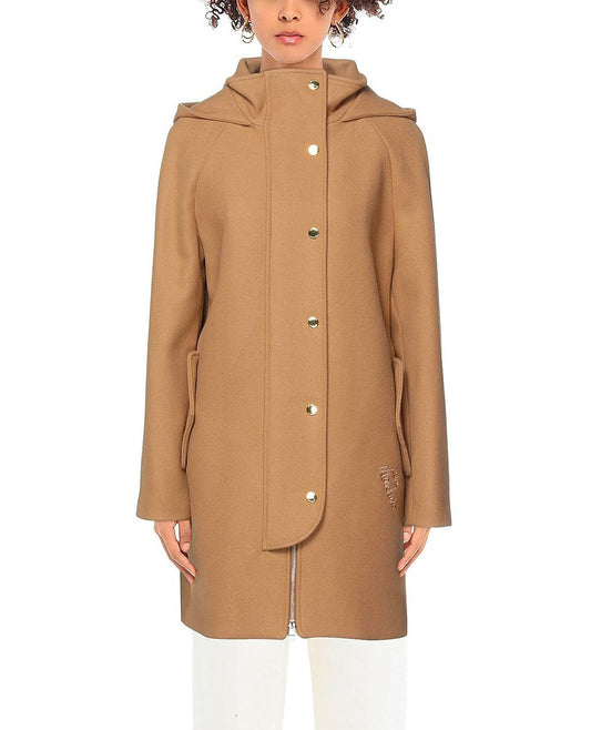 Elegant Blue Wool-Blend Coat with Golden Accents