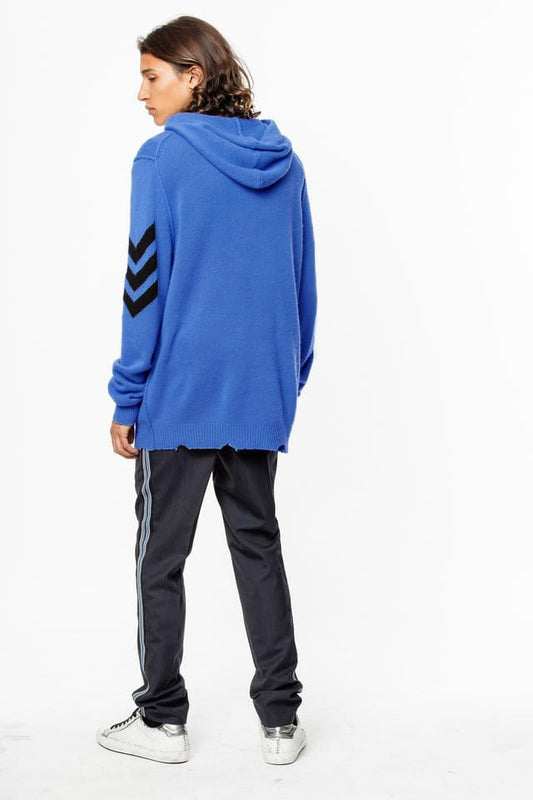 Chic Blue Cashmere Hooded Sweater with Arrow Motif