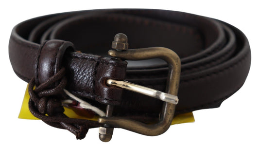 Elegant Dark Brown Leather Belt with Vintage Buckle