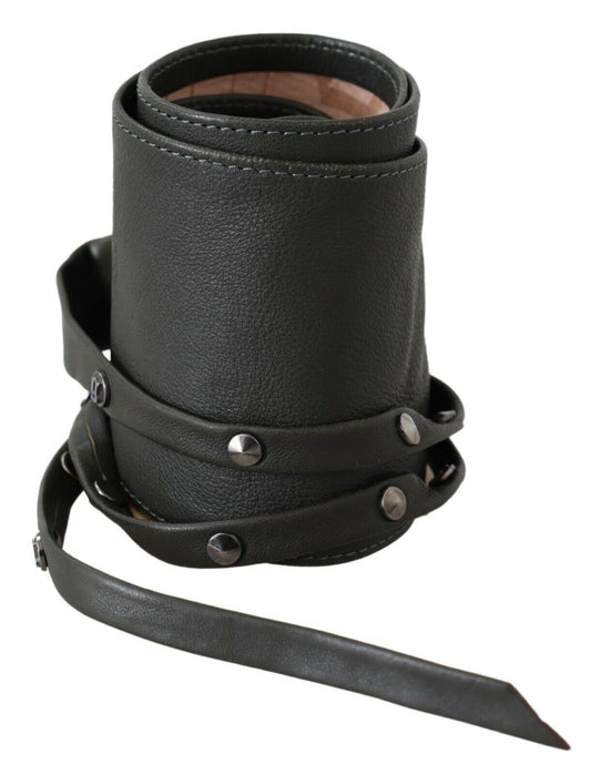 Elegant Dark Brown Leather Belt with Bronze-Tone Hardware