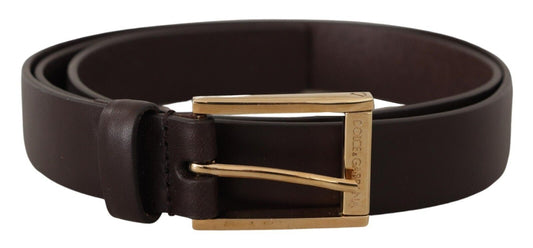 Elegant Dark Brown Leather Belt with Gold Buckle