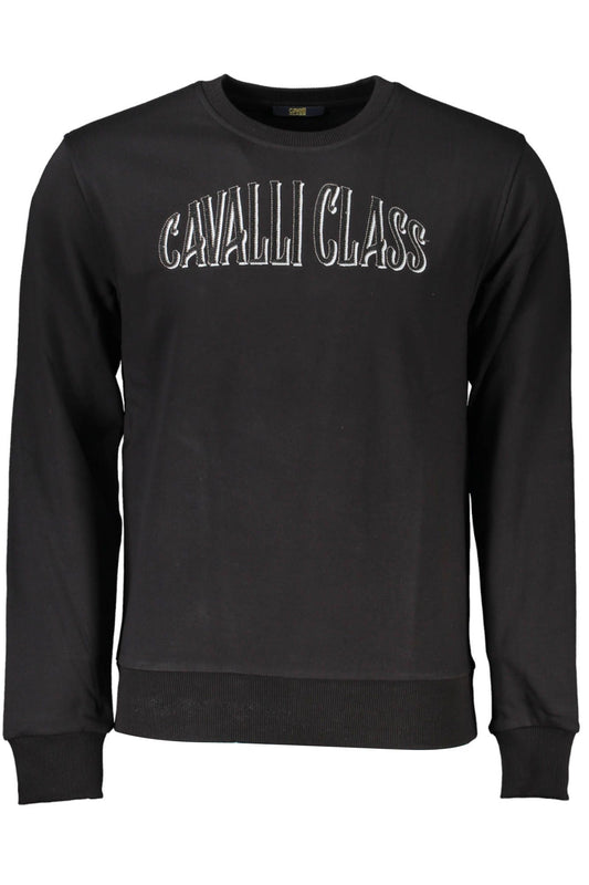 Sleek Black Round Neck Cotton Sweatshirt