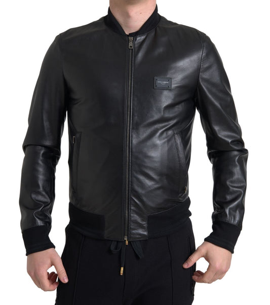 Elegant Black Leather Bomber Jacket