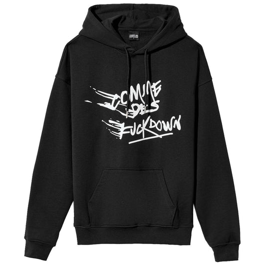Black Cotton Hooded Sweatshirt with Bold Prints