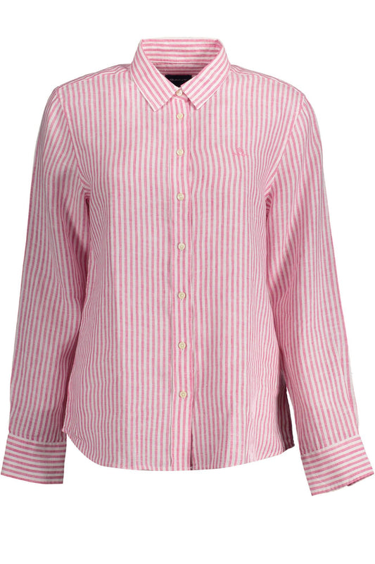 Elegant Linen Pink Long-Sleeved Shirt