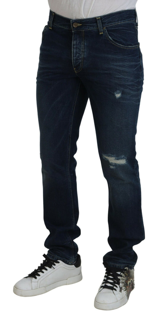 Elegant Tailored Blue Wool Trousers