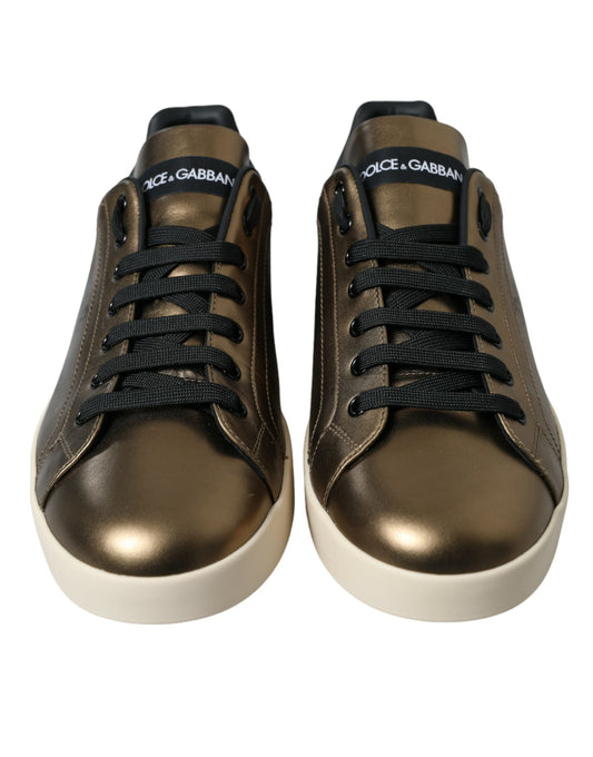 Bronze Leather Portofino Logo Men Sneakers Shoes
