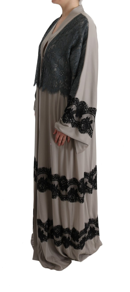 Elegant Gray Cape Kaftan Dress with Lace Detail