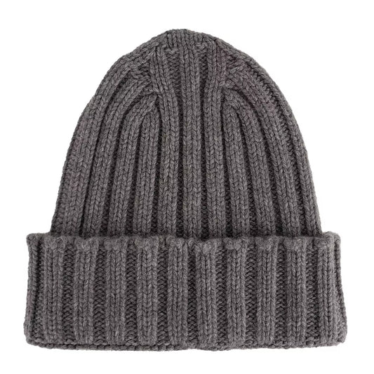 Elegant Gray Cashmere Hat with Ribbed Seam