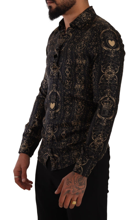Elegant Slim Fit Silk Crown Print Shirt