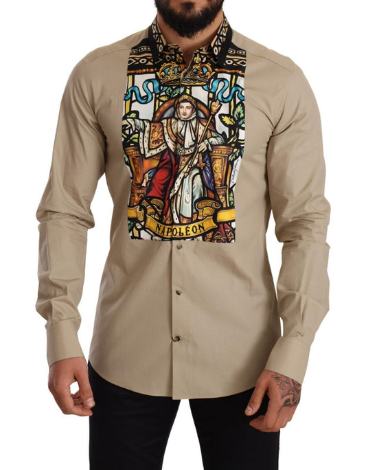 Elegant Beige Tuxedo Shirt with Unique Napoleon Print