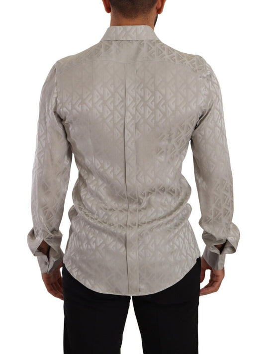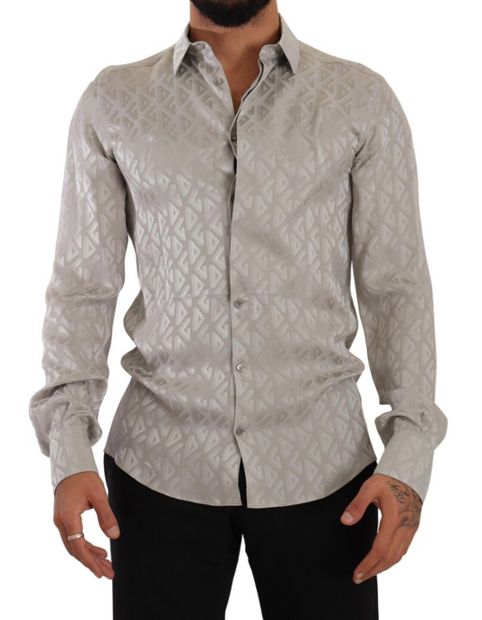 Sold outSleek Metallic Grey Silk Dress Shirt