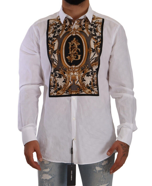 White GOLD Cotton Blend Dress Men Formal Shirt