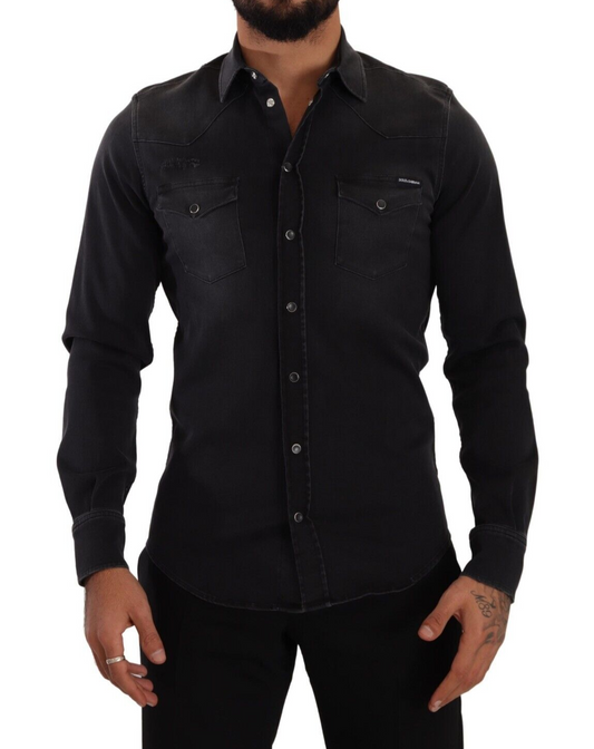 Sold outOpulent Slim Fit Black Cotton Shirt