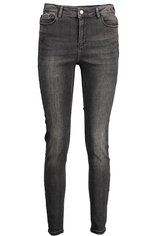 Embroidered Black Cotton Jeans with Signature Logo