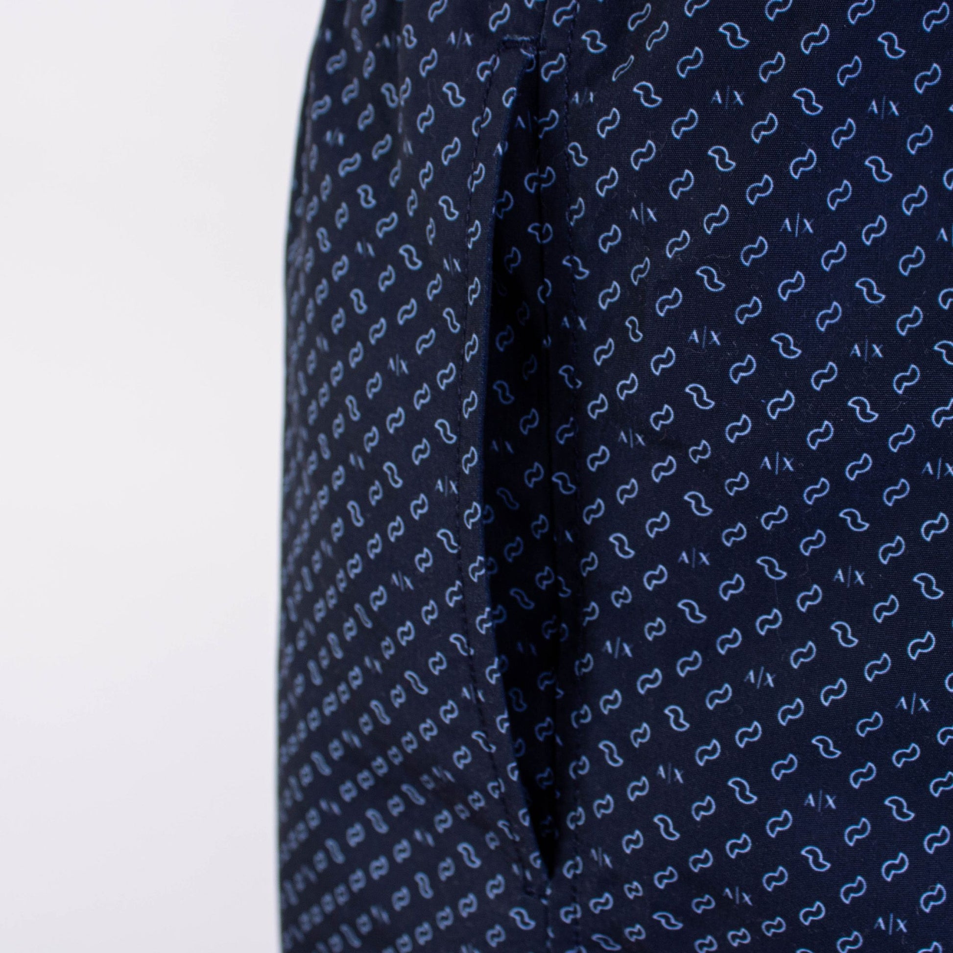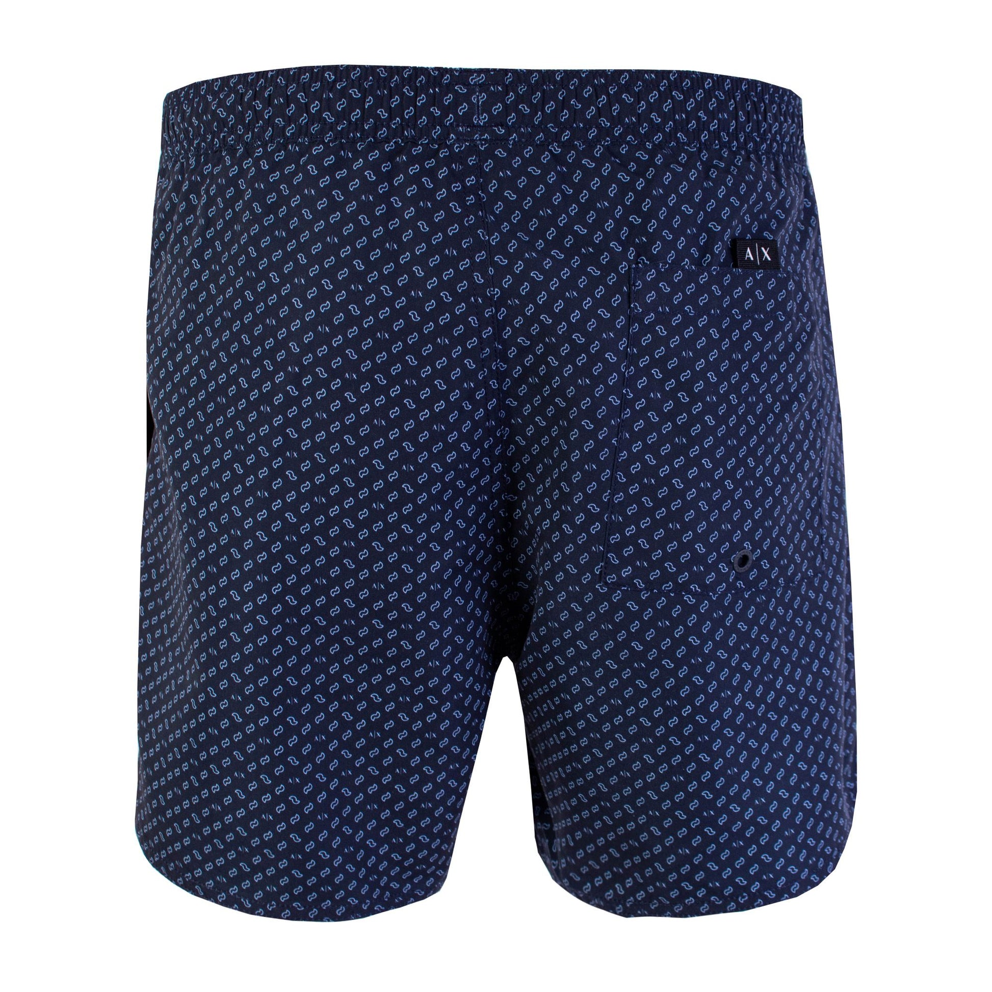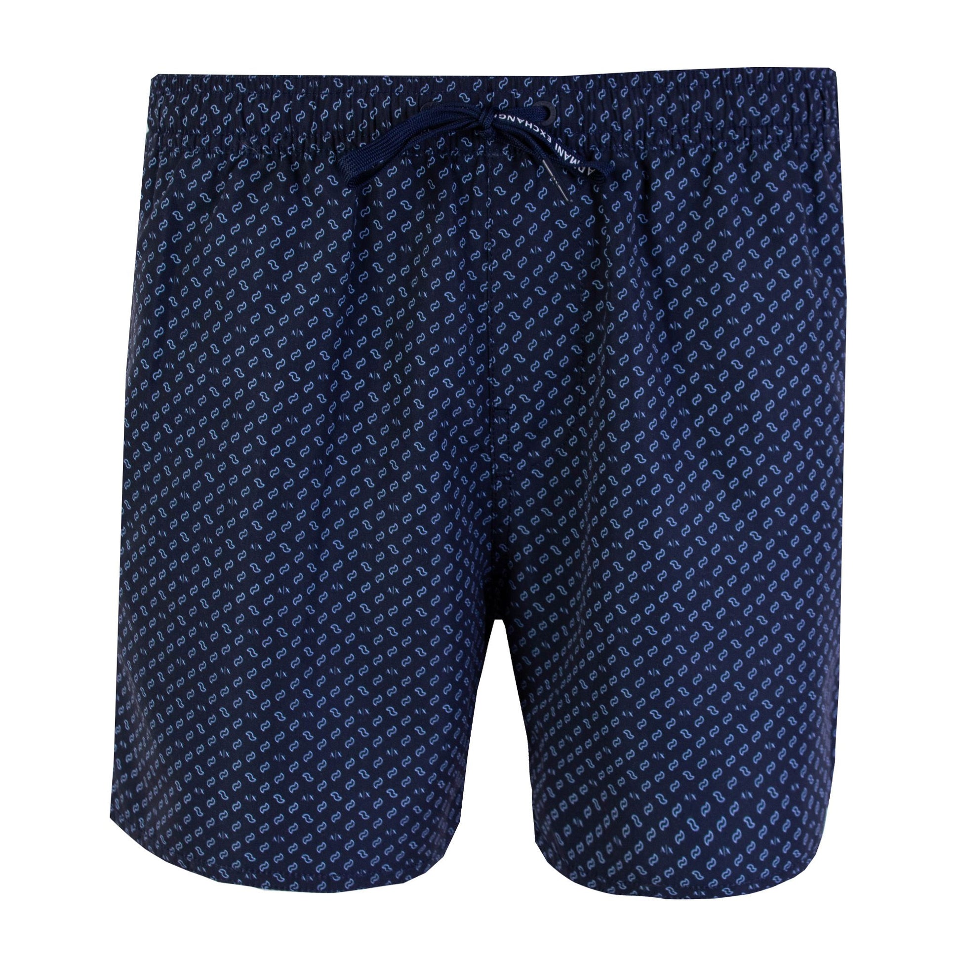 Step into the summer in style with these sophisticated, 100% authentic Armani Exchange swim shorts. Featuring a micro print design that offers a touch of elegance to your beach or pool attire. Crafted for comfort and style, they come with a convenient elastic waistband and adjustable drawstring, ensuring a perfect fit for all-day wear. The internal mesh briefs provide added support, while the two side pockets and the back pocket with Velcro closure make it practical to carry your essentials. The logo detail adds a recognizable touch of brand prestige.