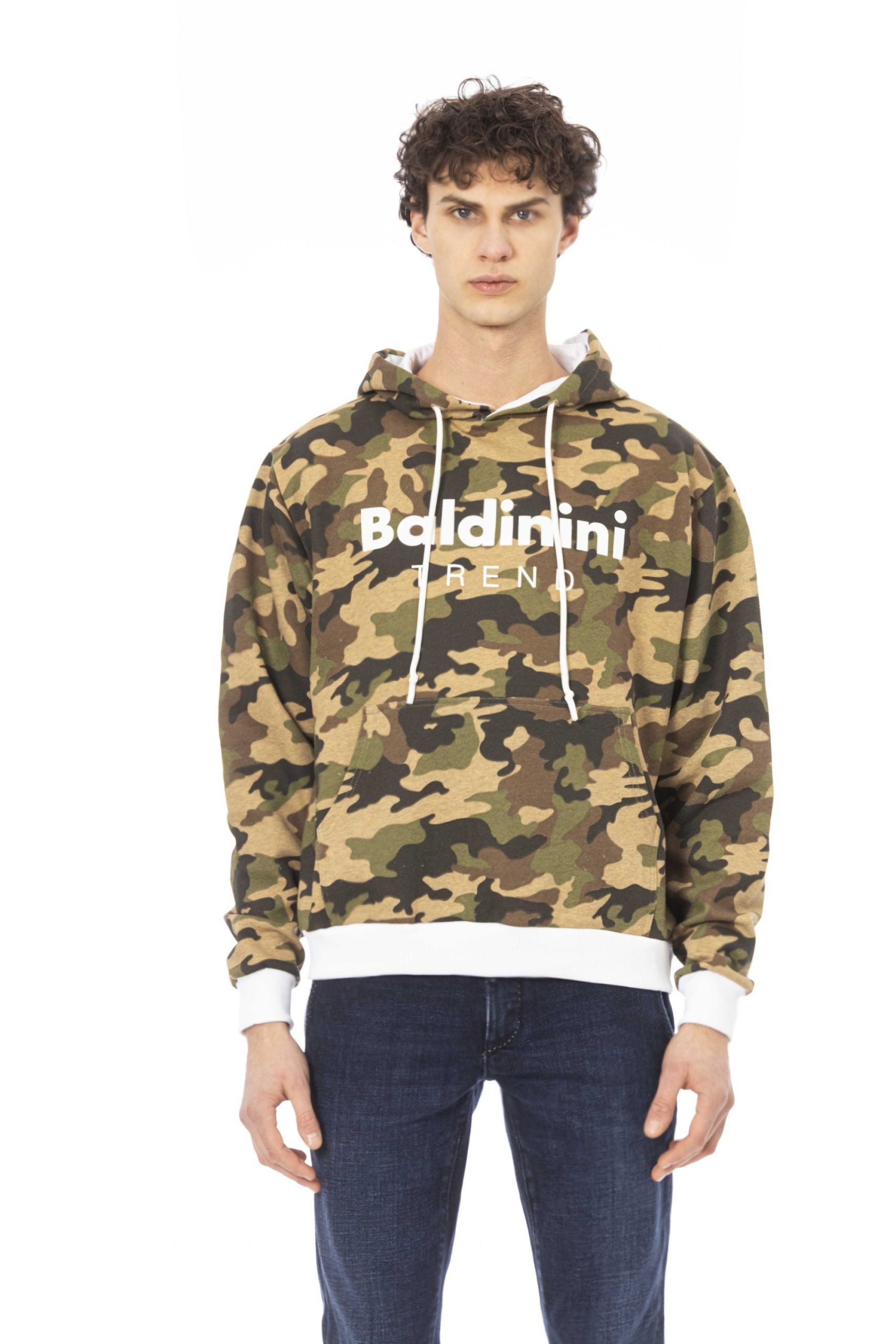 Embrace casual luxury with Baldinini Trend’s brushed hoodie, designed for the modern man. This long-sleeved, army-colored hoodie features a standout front logo and a practical maxi pocket, ensuring both style and functionality. Crafted from 100% cotton for maximum comfort, it’s perfect for those seeking a blend of fashion and comfort.