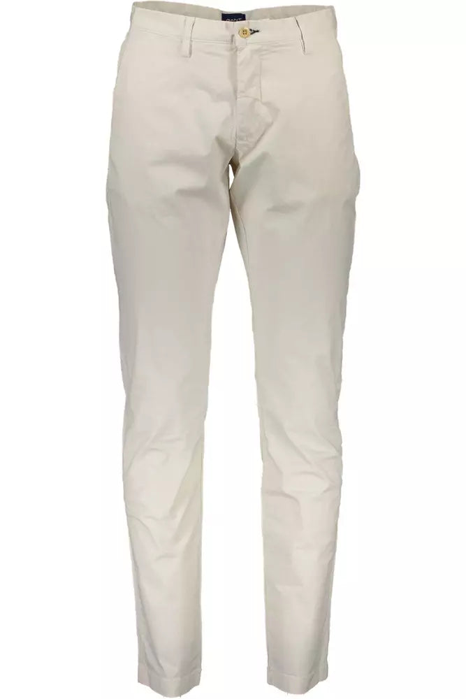 Discover the perfect blend of comfort and style with these impeccably tailored beige trousers from Gant. Designed to elevate your wardrobe, these trousers feature a classic four-pocket design complemented by a sleek button and zip closure. Adorned with the subtle Gant logo, they are a testament to understated elegance.
