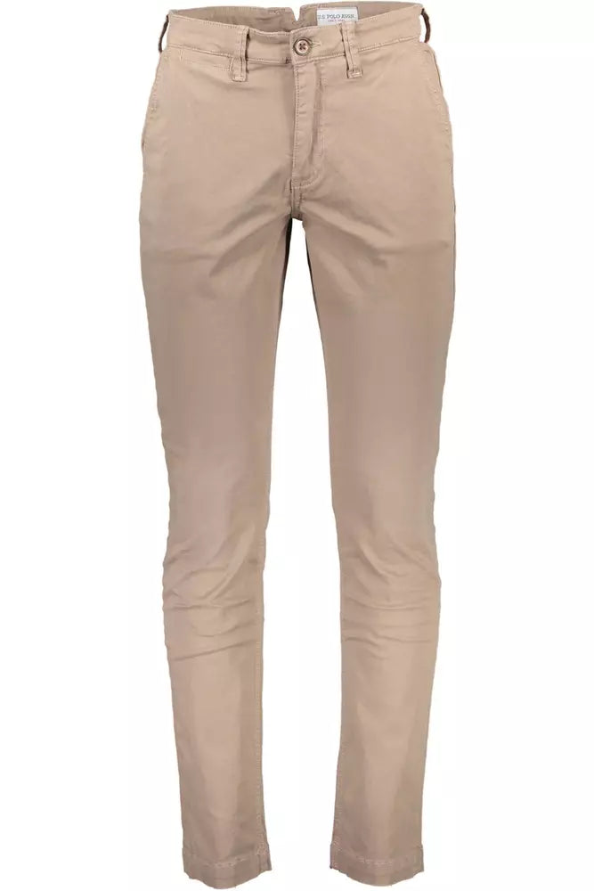 Step into effortless style with U.S. POLO ASSN.’s perfectly tailored beige trousers. Designed for sophisticated daily wear, these pants boast a classic five-pocket design, secured with a button and zip closure for a snug fit. Adorned with the iconic logo, they blend timeless fashion with modern functionality.