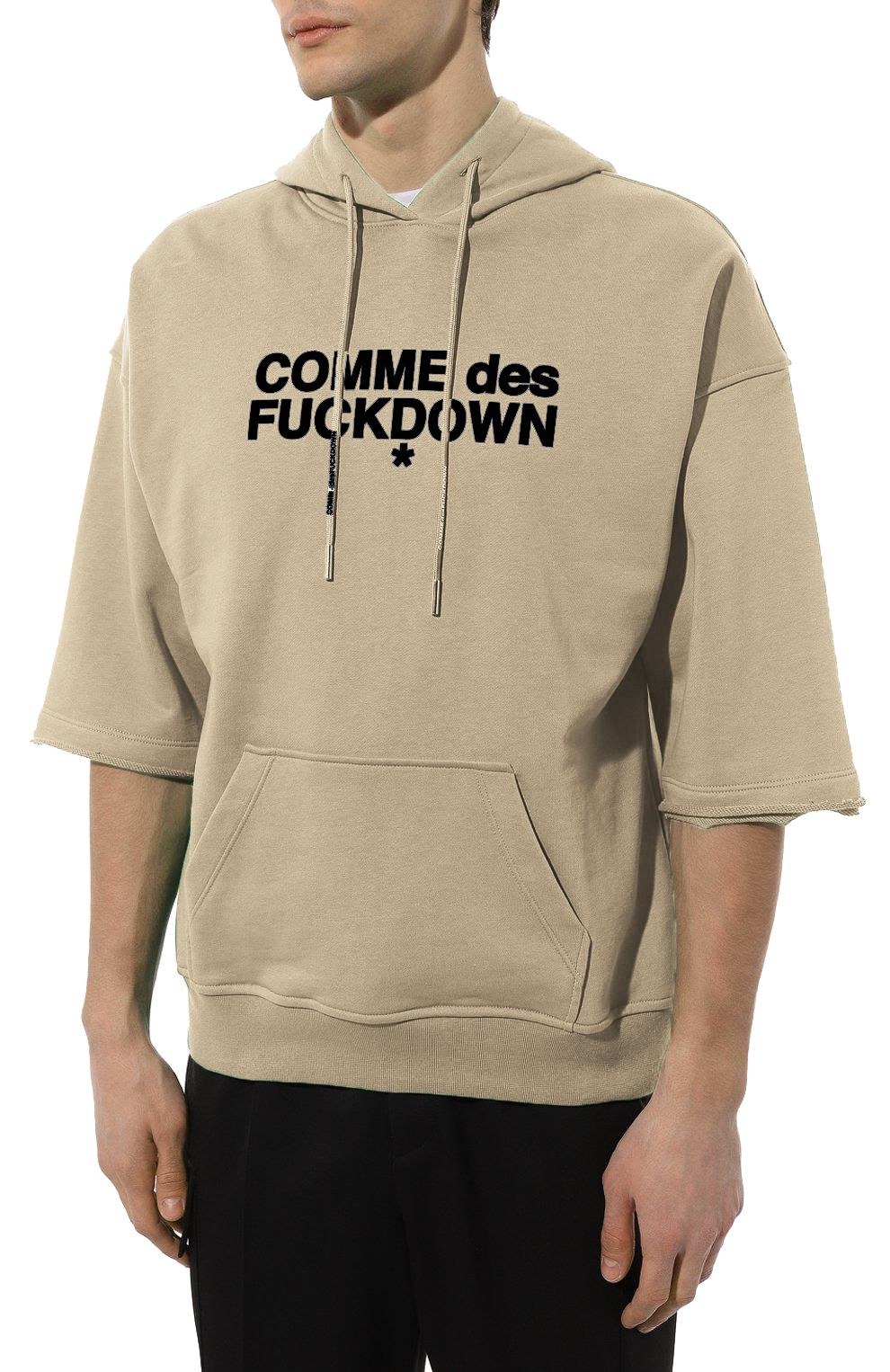Beige Hooded Cotton Sweatshirt with Logo Print
