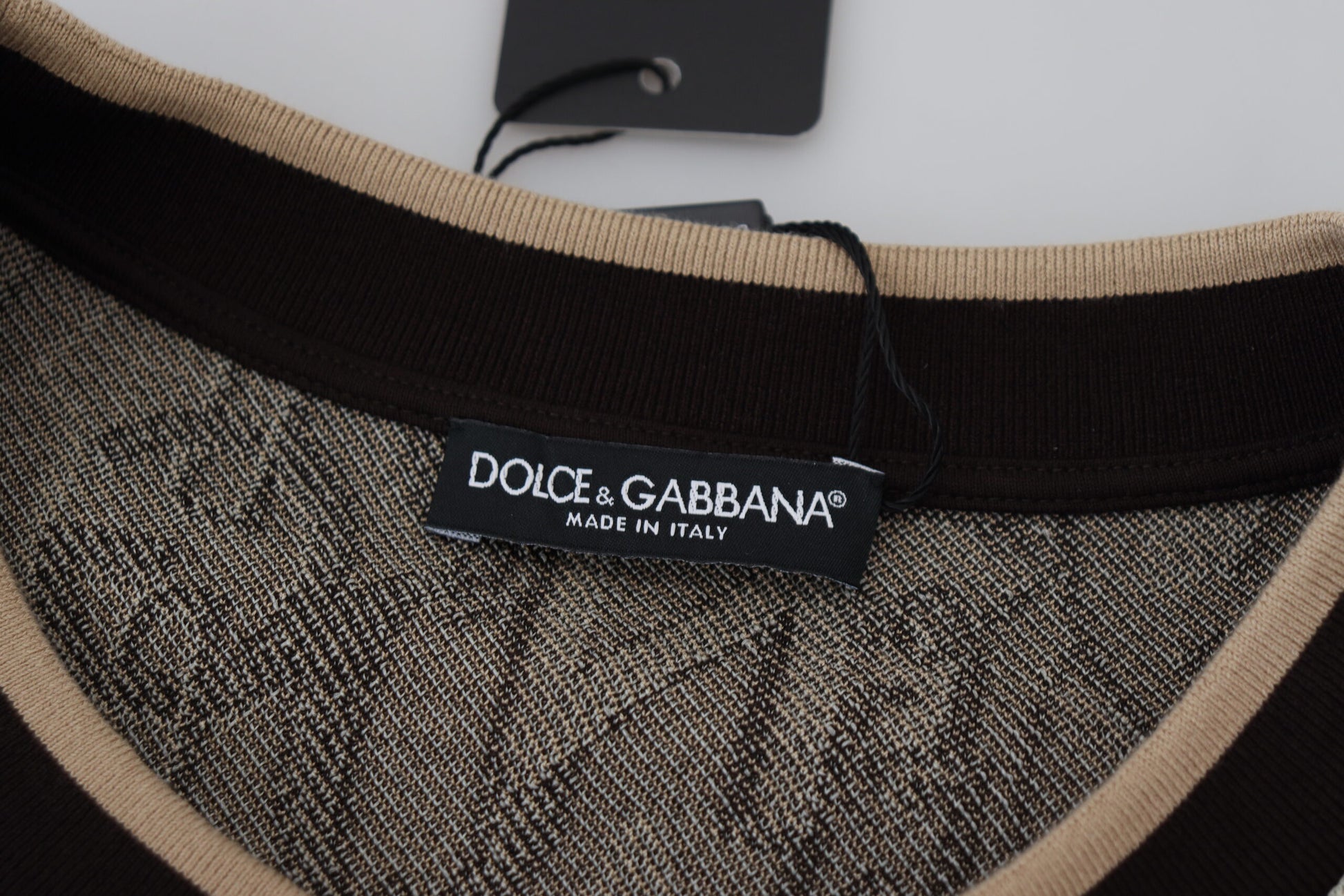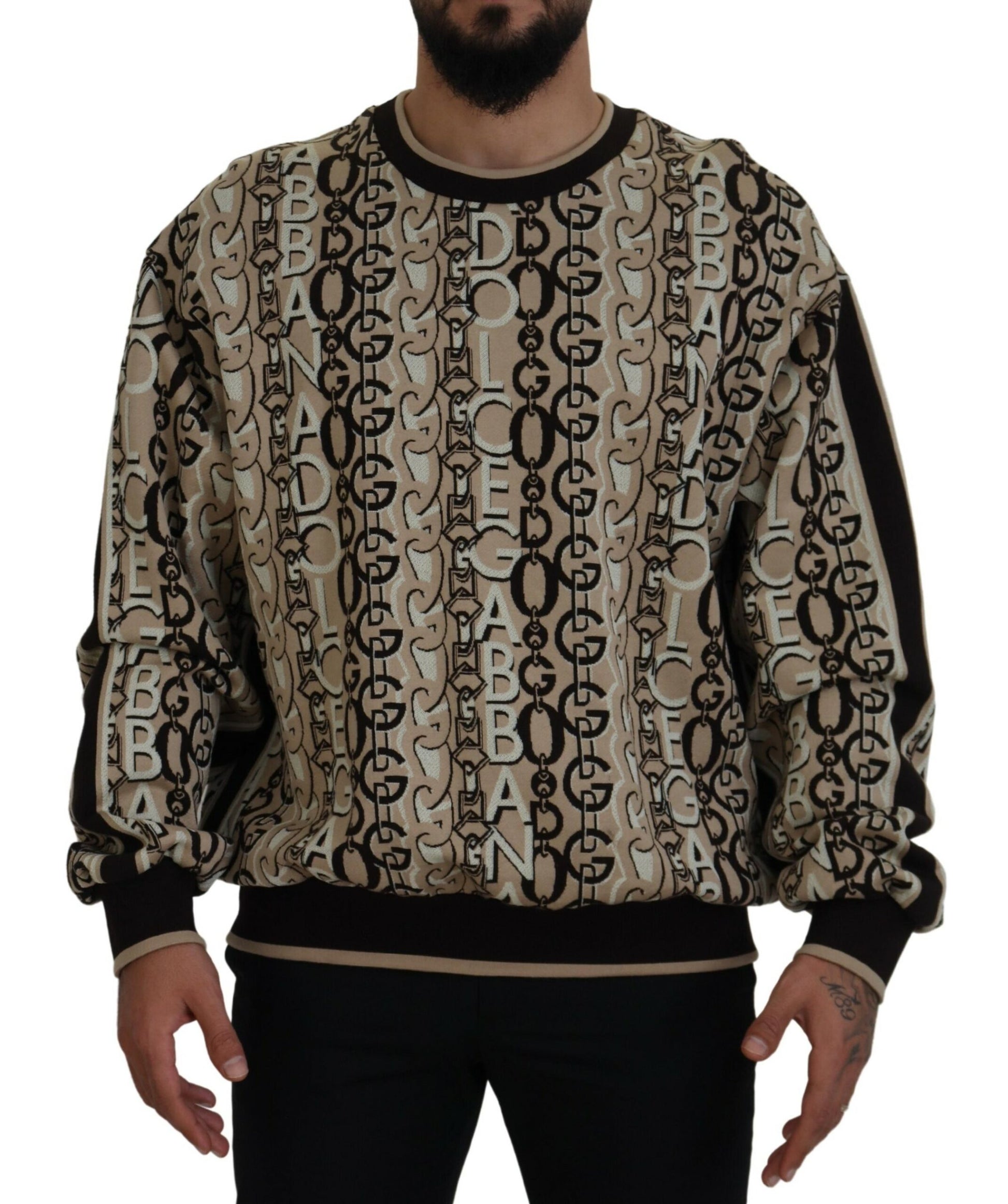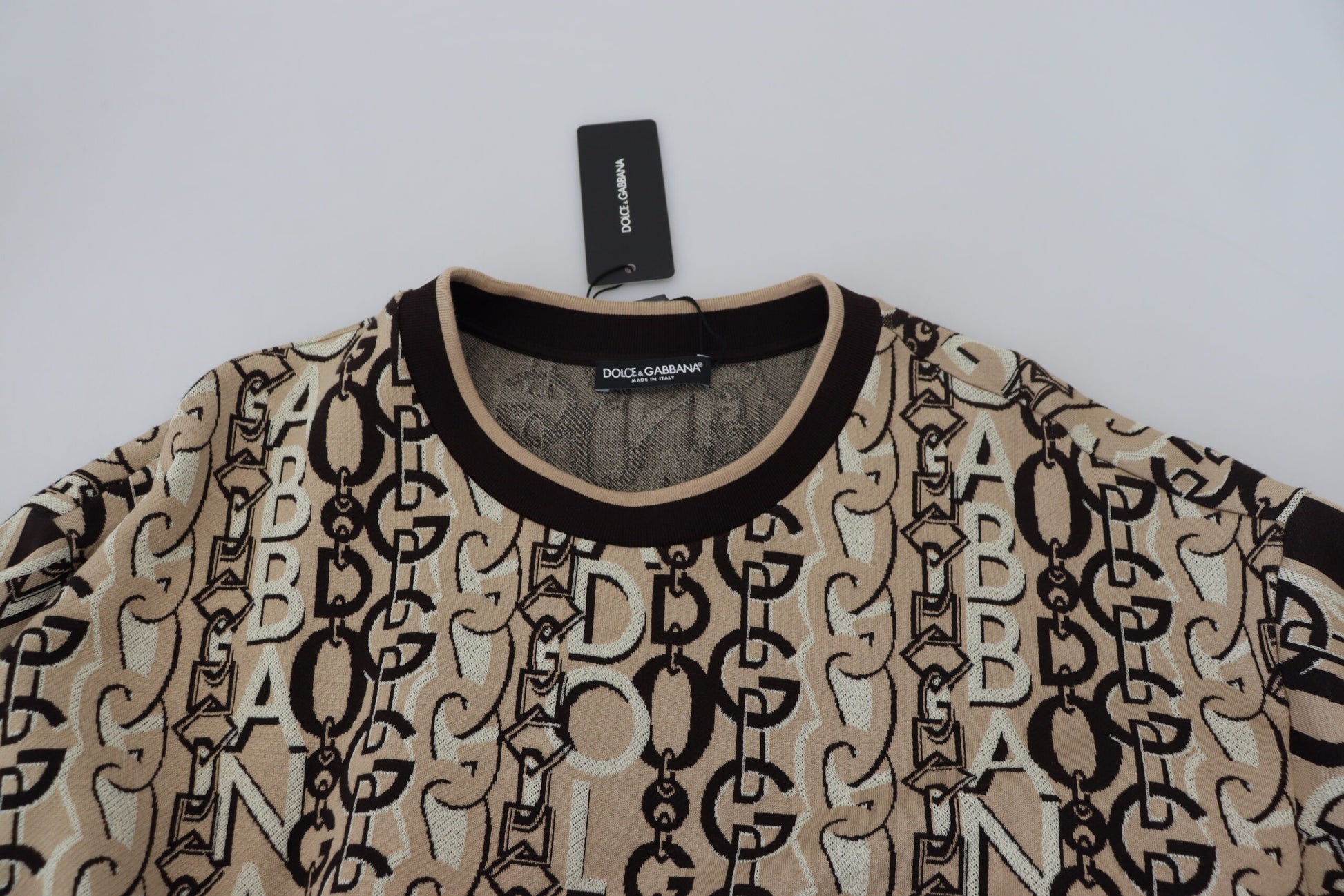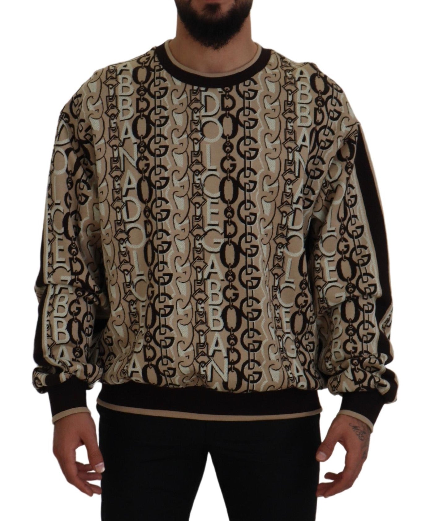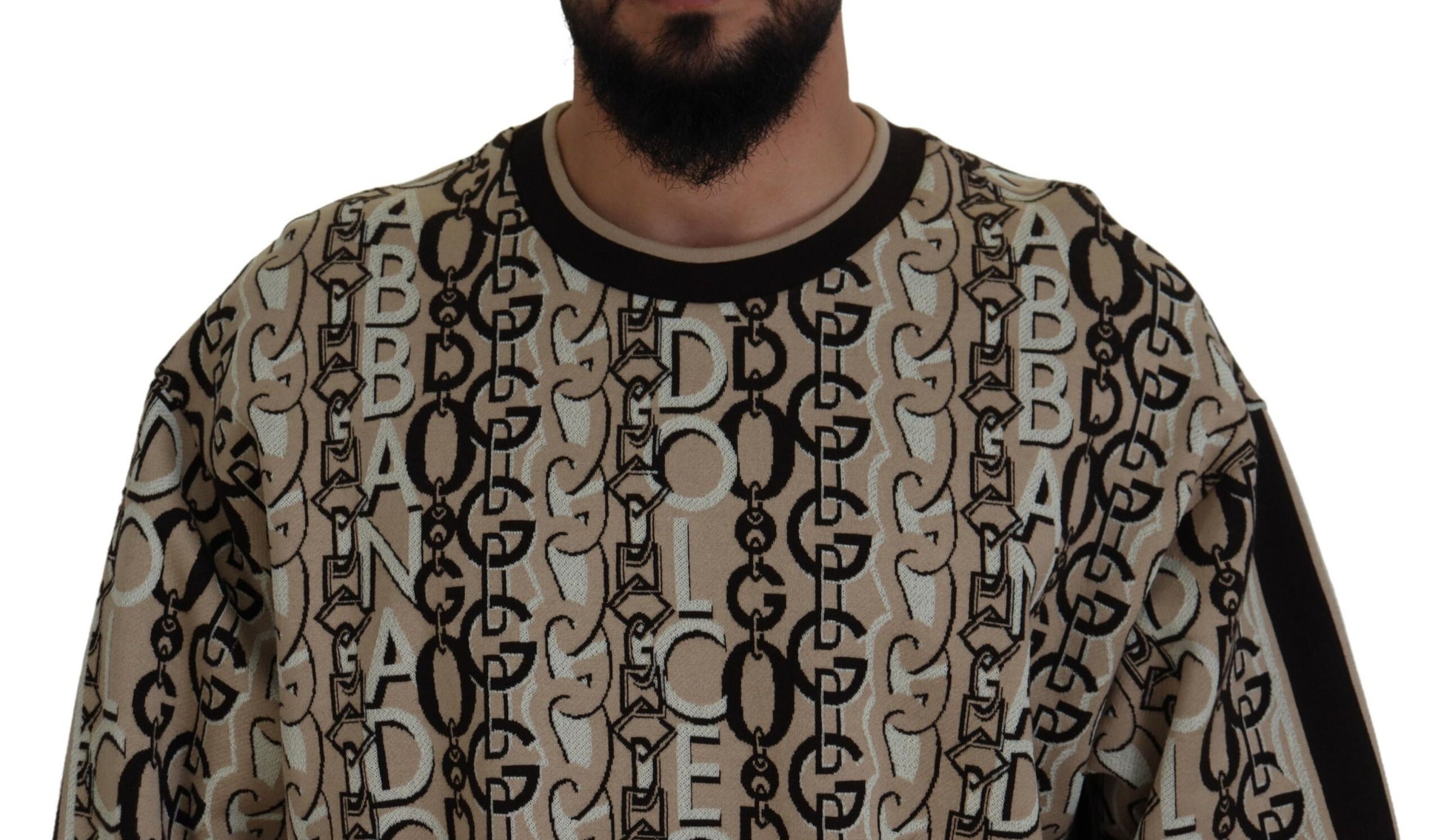 Indulge in the epitome of sophistication with this superbly crafted beige pullover sweater from Dolce & Gabbana. This luxurious piece is an embodiment of elegance and comfort. Perfect for any man who cherishes high-end fashion with a touch of timeless grace.