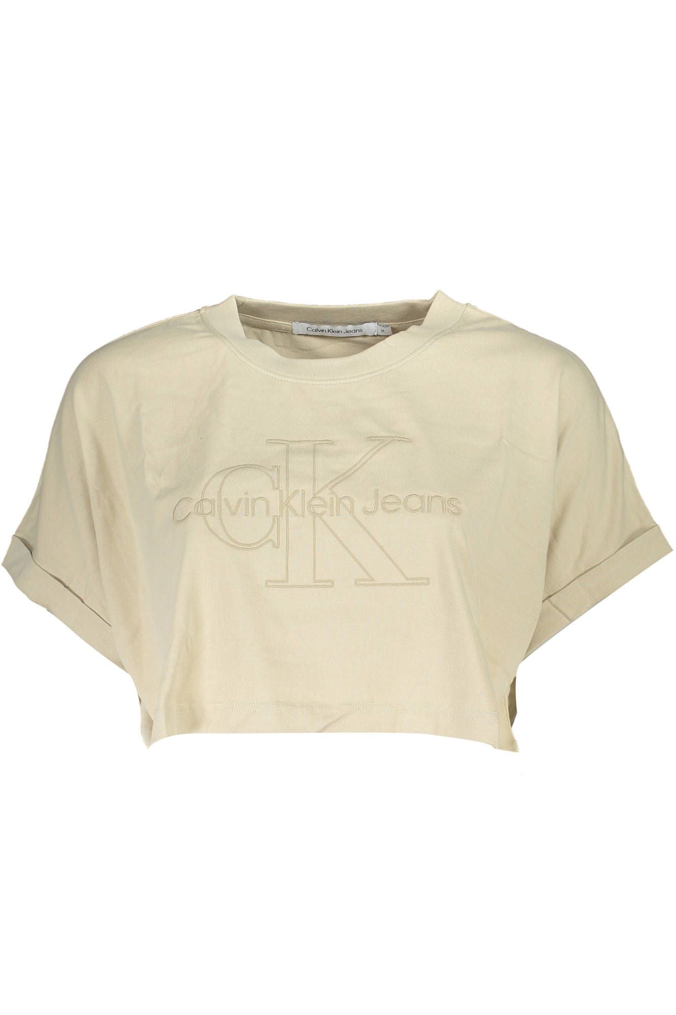 Exude effortless elegance with this chic beige t-shirt from Calvin Klein. Boasting short sleeves, a comfortable round neck, and the brand’s signature logo intricately embroidered for that touch of luxury. A versatile addition to any wardrobe, ideal for casual outings or as a sophisticated layering piece.