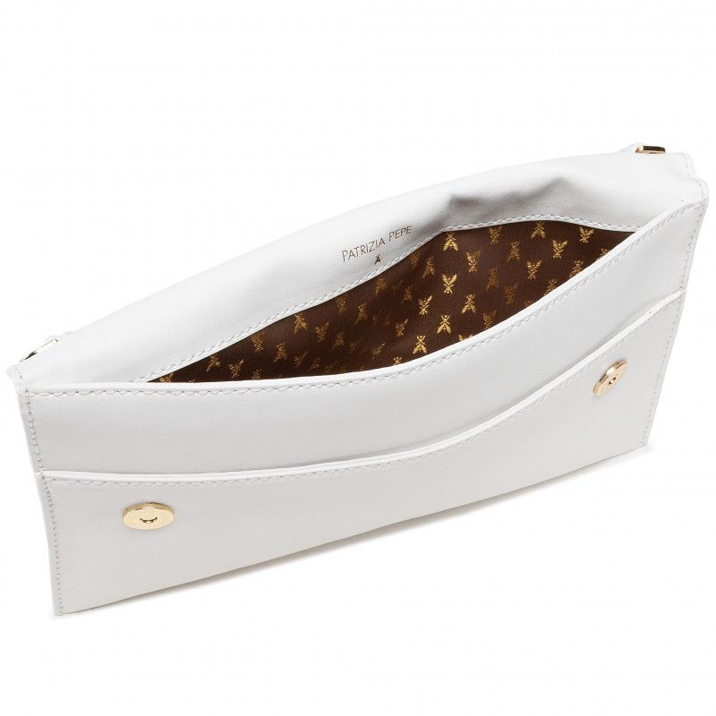 Elegance meets functionality in this sleek white shoulder bag, crafted from premium quality leather for a luxurious feel. This stylish accessory features a subtle brand logo on the front, complemented by sophisticated gold hardware, adding a touch of glamour to any outfit. Its slim profile measures 27.5x17x2 cm, perfect for your essentials. Made in Italy, this bag epitomizes fine craftsmanship.