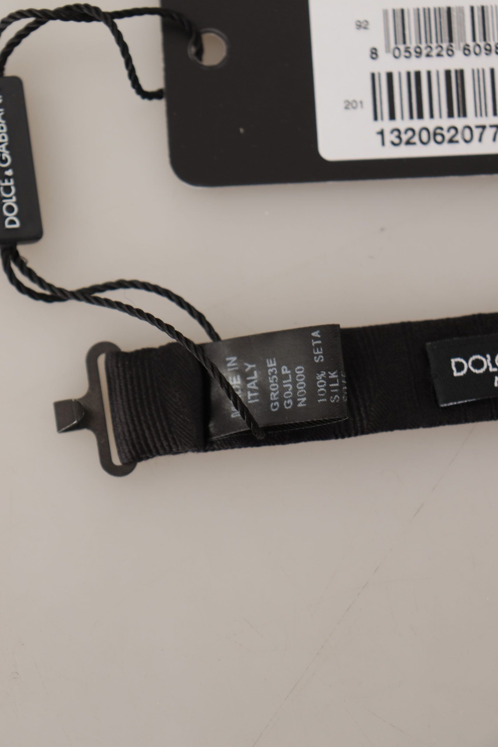 Indulge in the elegance of Italian craftsmanship with this stunning 100% Authentic, brand new with tags bow tie by Dolce & Gabbana. Its classic black hue and pure silk material offer a touch of sophistication to any formal attire, while the adjustable neck strap provides a comfortable, tailored fit for any size. Perfect for high-class events and making a refined statement.
