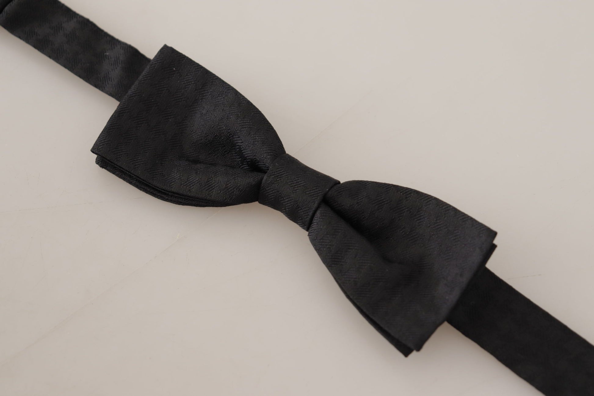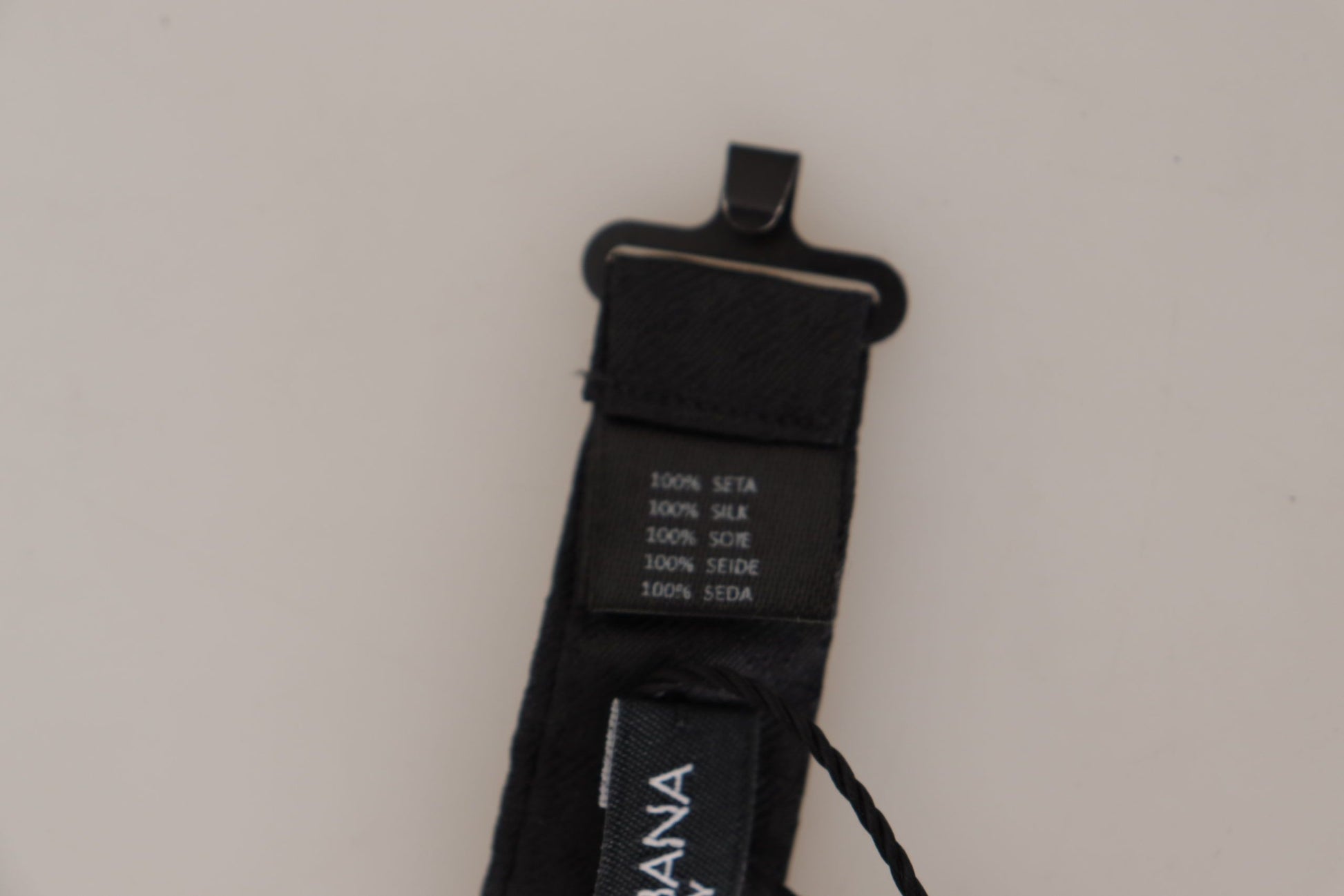 Exude sophistication with this 100% Authentic Dolce & Gabbana bow tie, a statement piece for any formal occasion. Tailored from sumptuous silk, this tie boasts a lustrous black hue that complements a variety of dress shirts and suits. Crafted with keen attention to detail in Italy, it features an adjustable neck strap, ensuring a perfect fit for any gentleman.