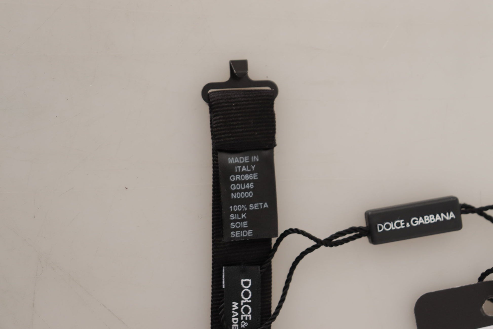 Discover the epitome of sophistication with this exquisite, 100% Authentic Dolce & Gabbana bow tie. Each piece heralds from their exclusive collection, crafted in Italy with the finest silk. Its sleek black hue ensures a classic complement to your formal attire, while the adjustable neck strap provides a flawless fit for any size.