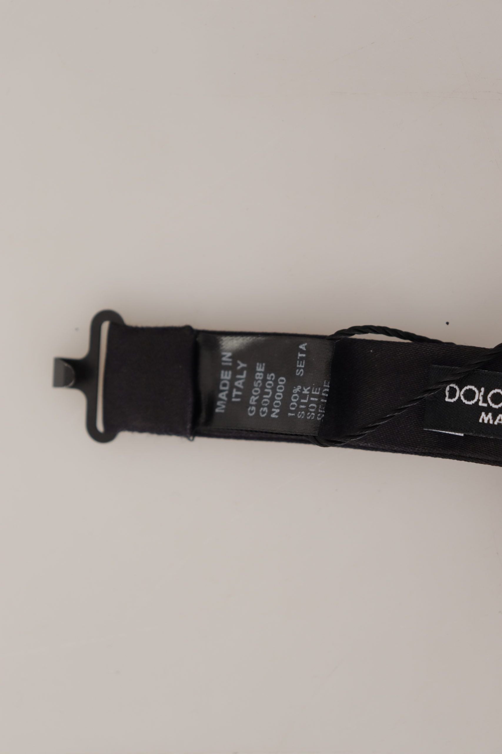 Experience unparalleled sophistication with this 100% Authentic Dolce & Gabbana black silk bow tie. Designed for the discerning gentleman, it features a timeless tied model, ensuring a perfect knot for any formal event. Crafted in Italy with the finest silk, this bow tie offers an adjustable neck strap to fit one size. Its sleek design radiates luxury and is sure to accentuate any ensemble.