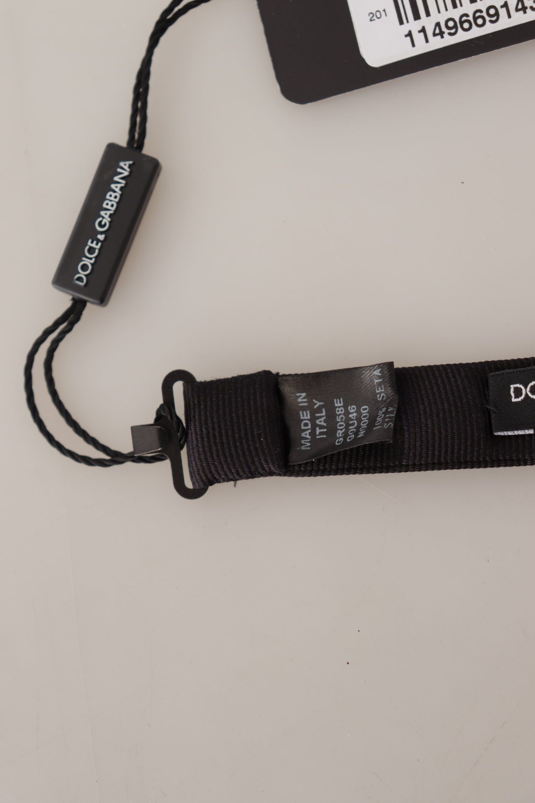 Exude timeless elegance with this stunning 100% Authentic Dolce & Gabbana black bow tie. Ideal for any formal occasion, this tie adds a touch of luxury and sophistication to your wardrobe. Its adjustable neck strap ensures a perfect fit for any size. Crafted in Italy, this silk accessory is a wardrobe essential for those who appreciate the finest details in menswear.