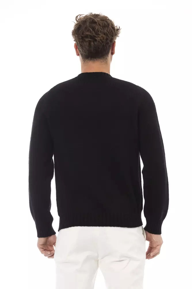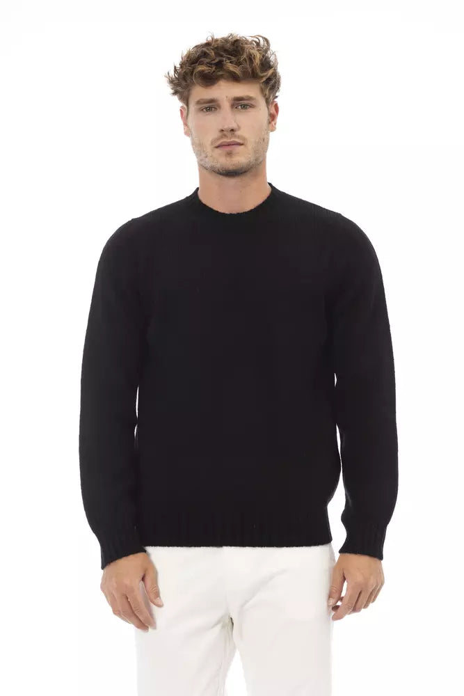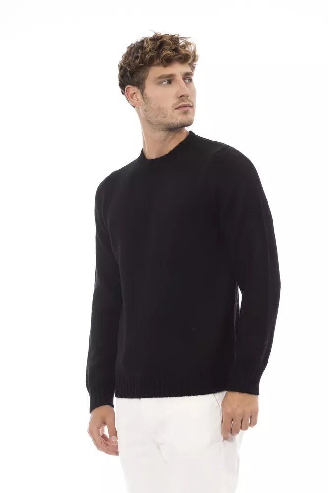 Experience the epitome of elegance and comfort with this Alpha Studio Crewneck Sweater. Crafted with a luxurious blend of alpaca leather, wool, and acetate, this sleek black sweater is a classic addition to any wardrobe. Its regular fit paired with ribbed details on the collar, cuffs, and bottom ensures a timeless look that stays chic through the seasons.