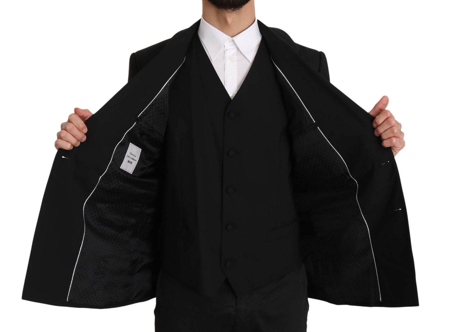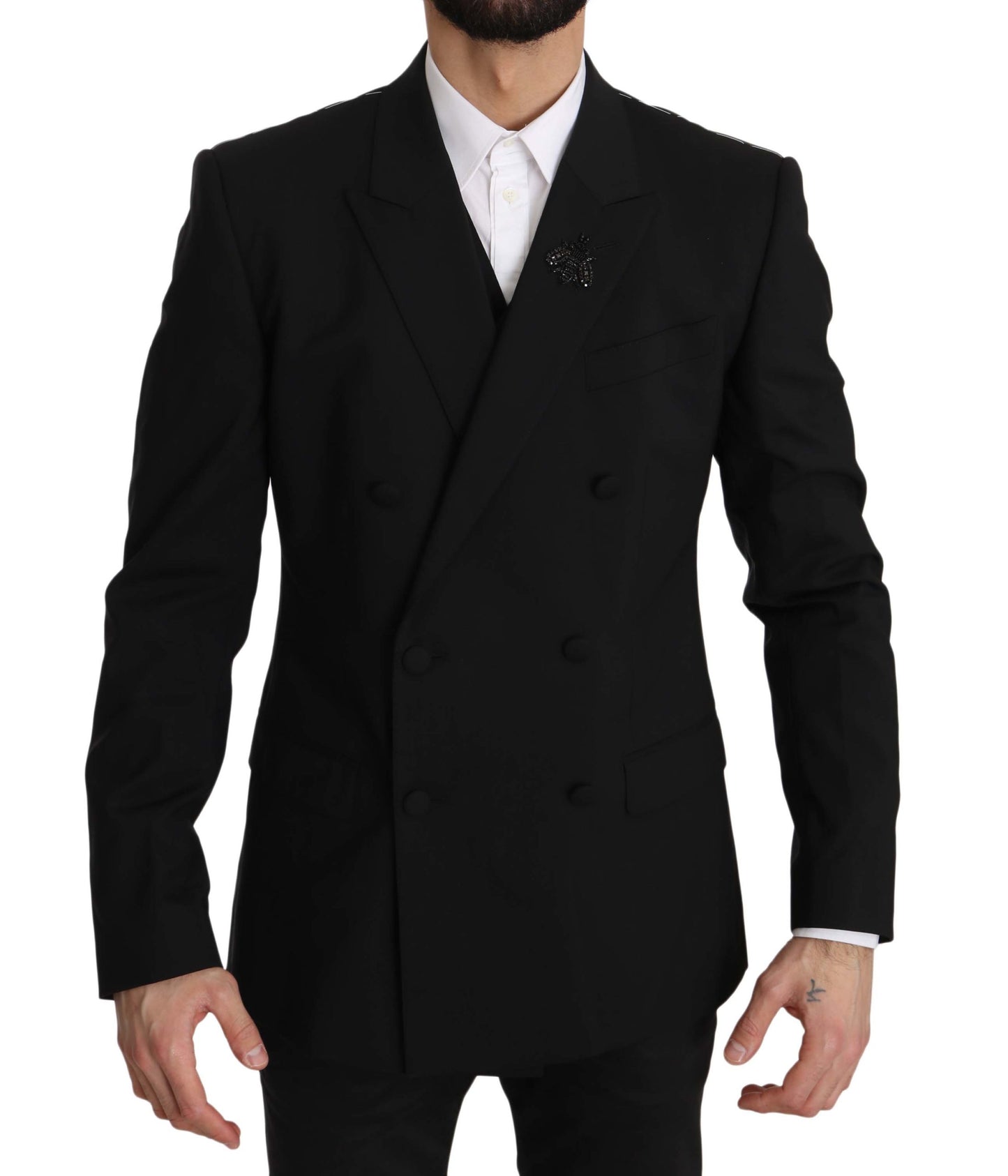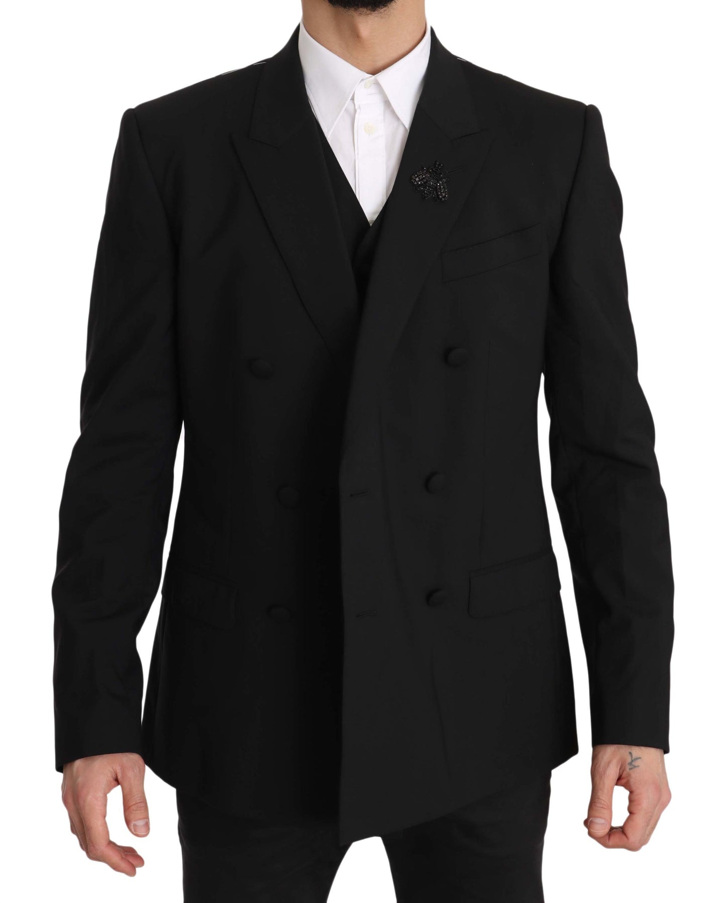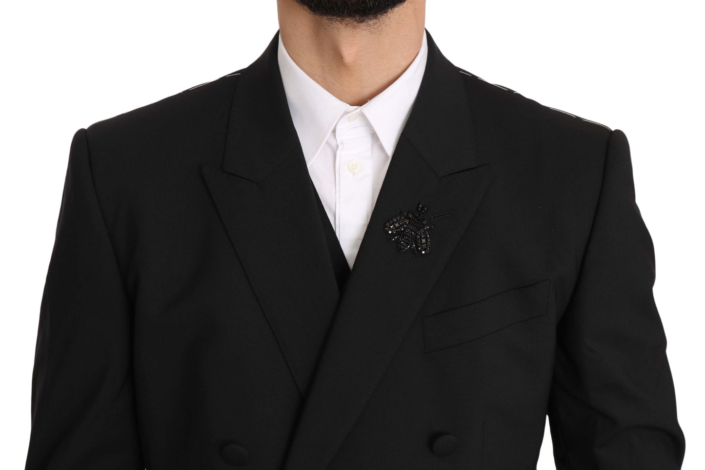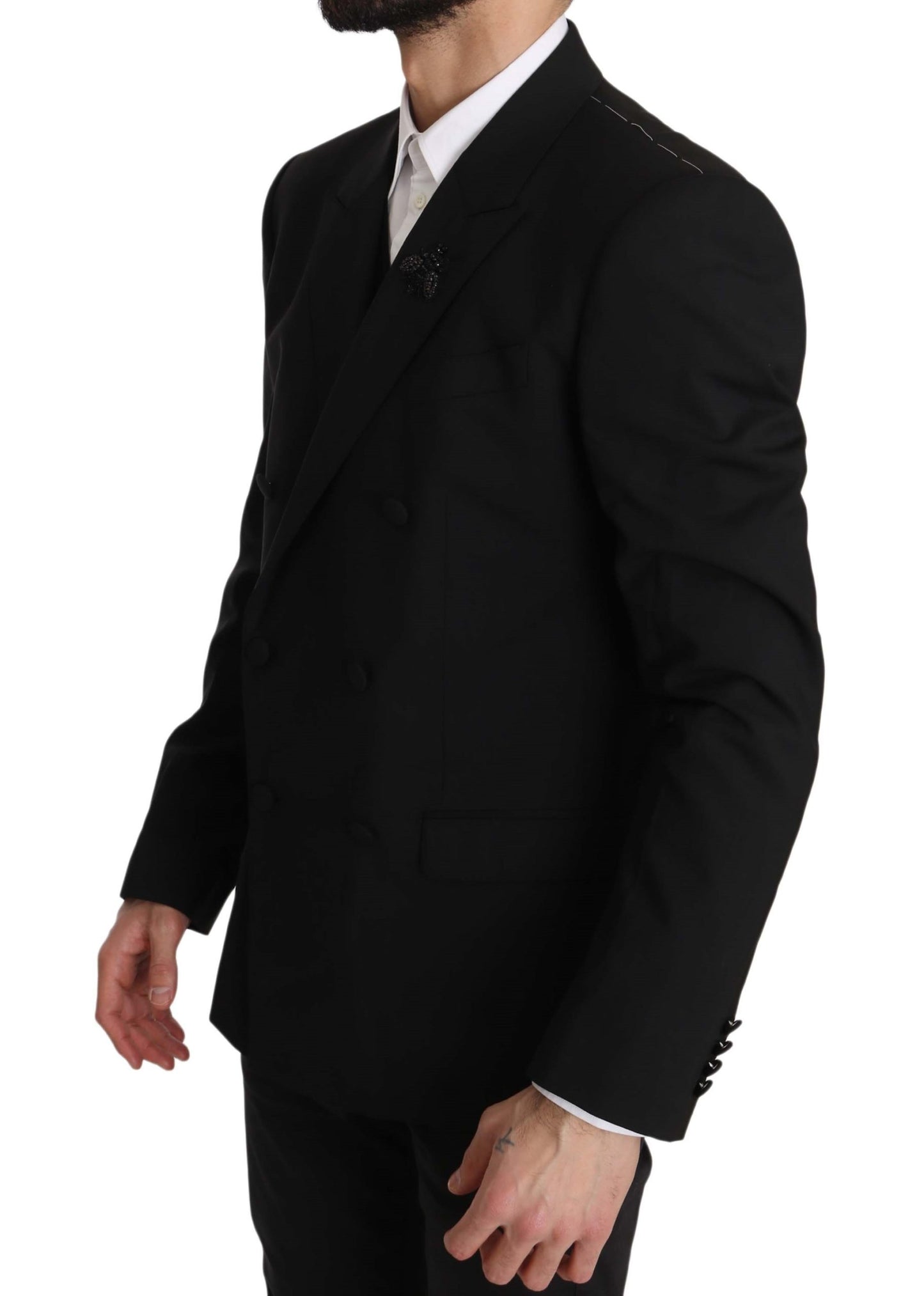 Immerse yourself in the epitome of luxury with this exquisite Dolce & Gabbana blazer. Distinguished by its sharp double-breasted design and unique bee embellishments, this Martini model blazer is a true testament to Italian craftsmanship. Perfect for those who seek a regular fit with an edge of sophistication, its deep black hue complements any ensemble. The blazer features a practical configuration of three external pockets and two internal pockets, ensuring ample space for essentials. Experience outstanding comfort and a premium fit, all while making a bold fashion statement. Elevate your wardrobe with this distinctive piece, proudly made in Italy.