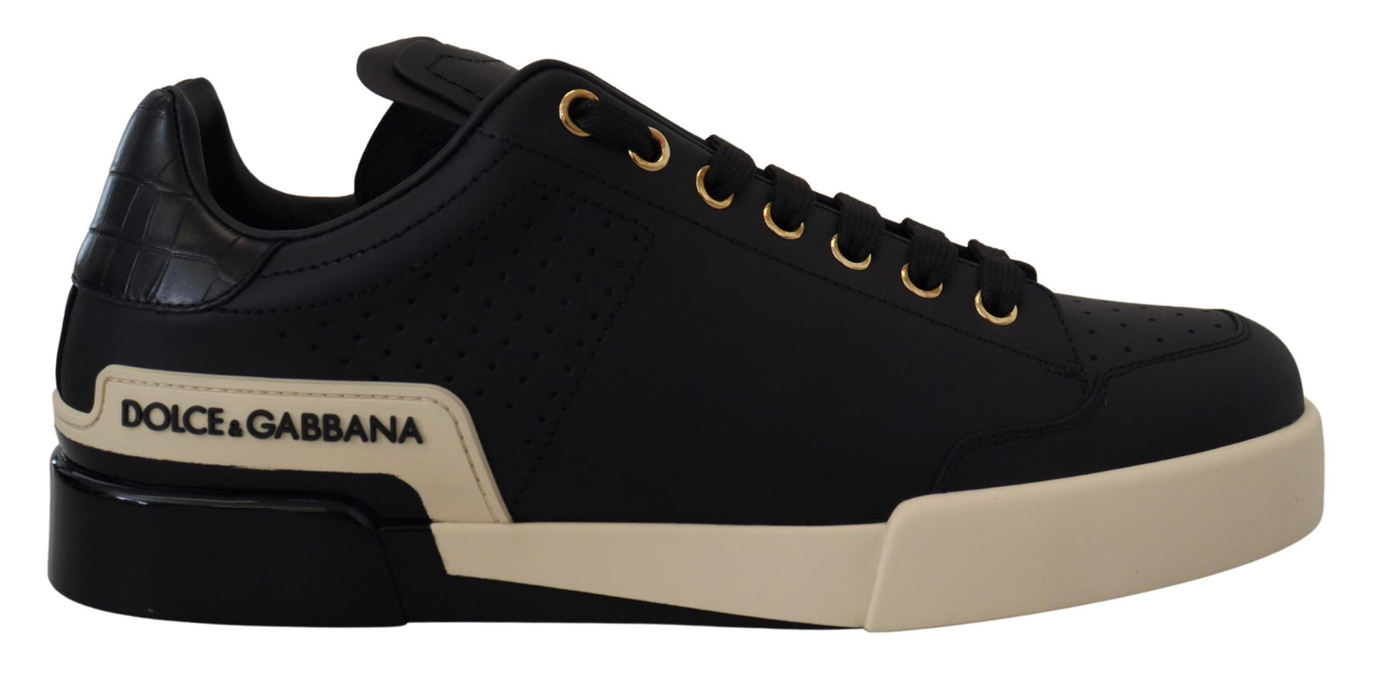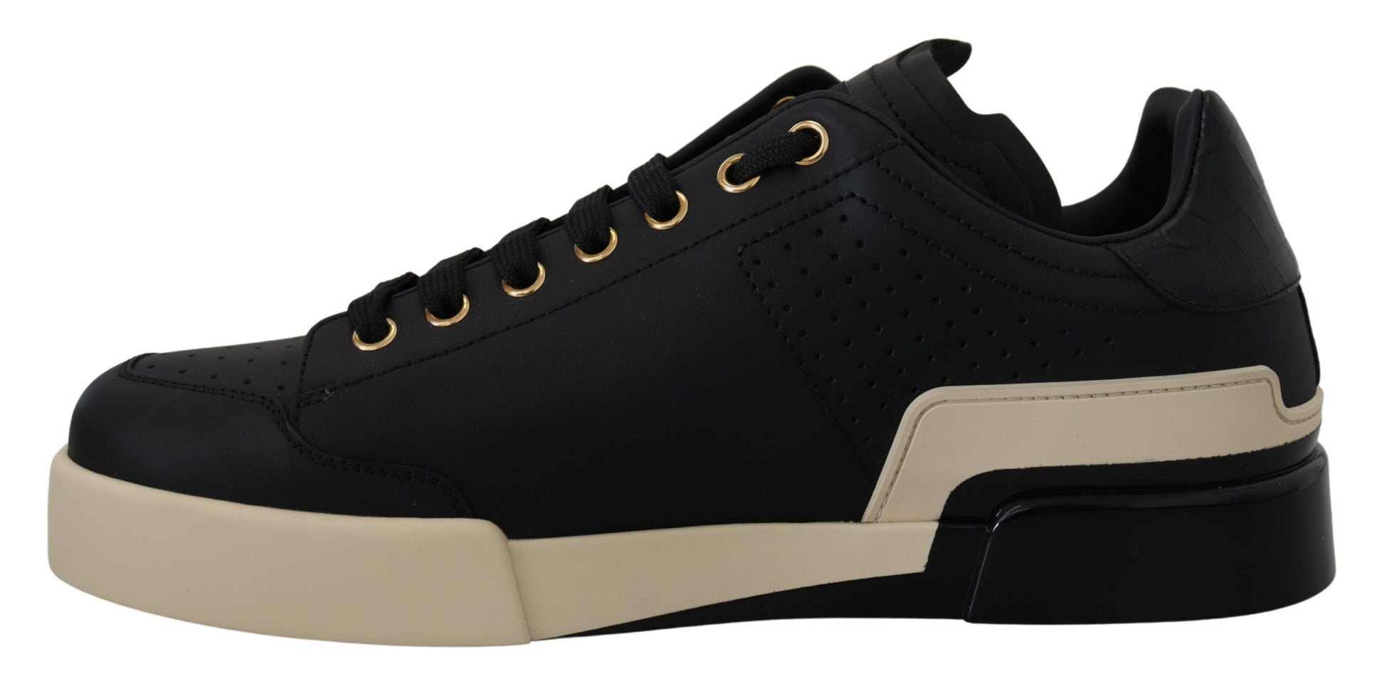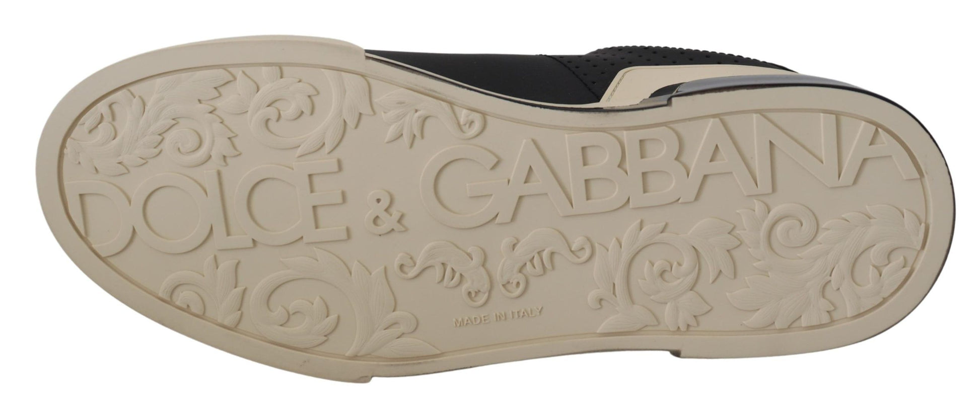Step into luxury with these exquisite black and beige low-top sneakers from the prestigious Dolce & Gabbana. These brand-new shoes come with tags, ensuring the authenticity and excellence you expect from such a renowned label. Crafted with superb attention to detail, they feature a durable rubber sole adorned with the iconic logo, perfect for adding a touch of class to any casual ensemble.