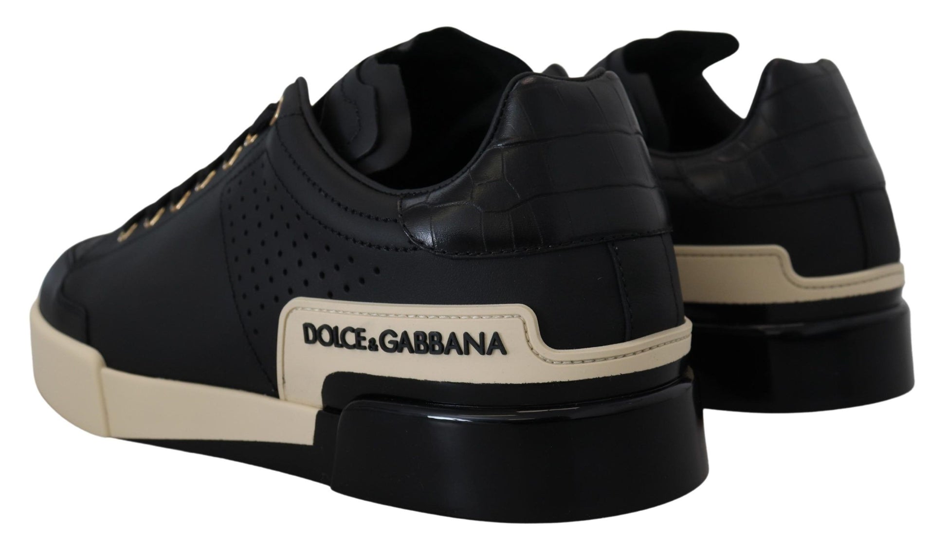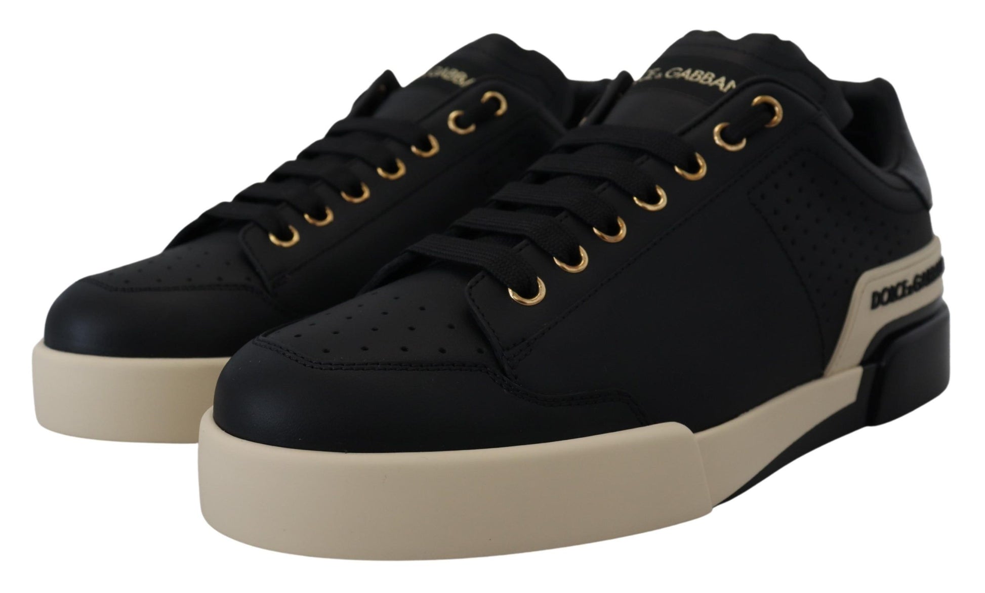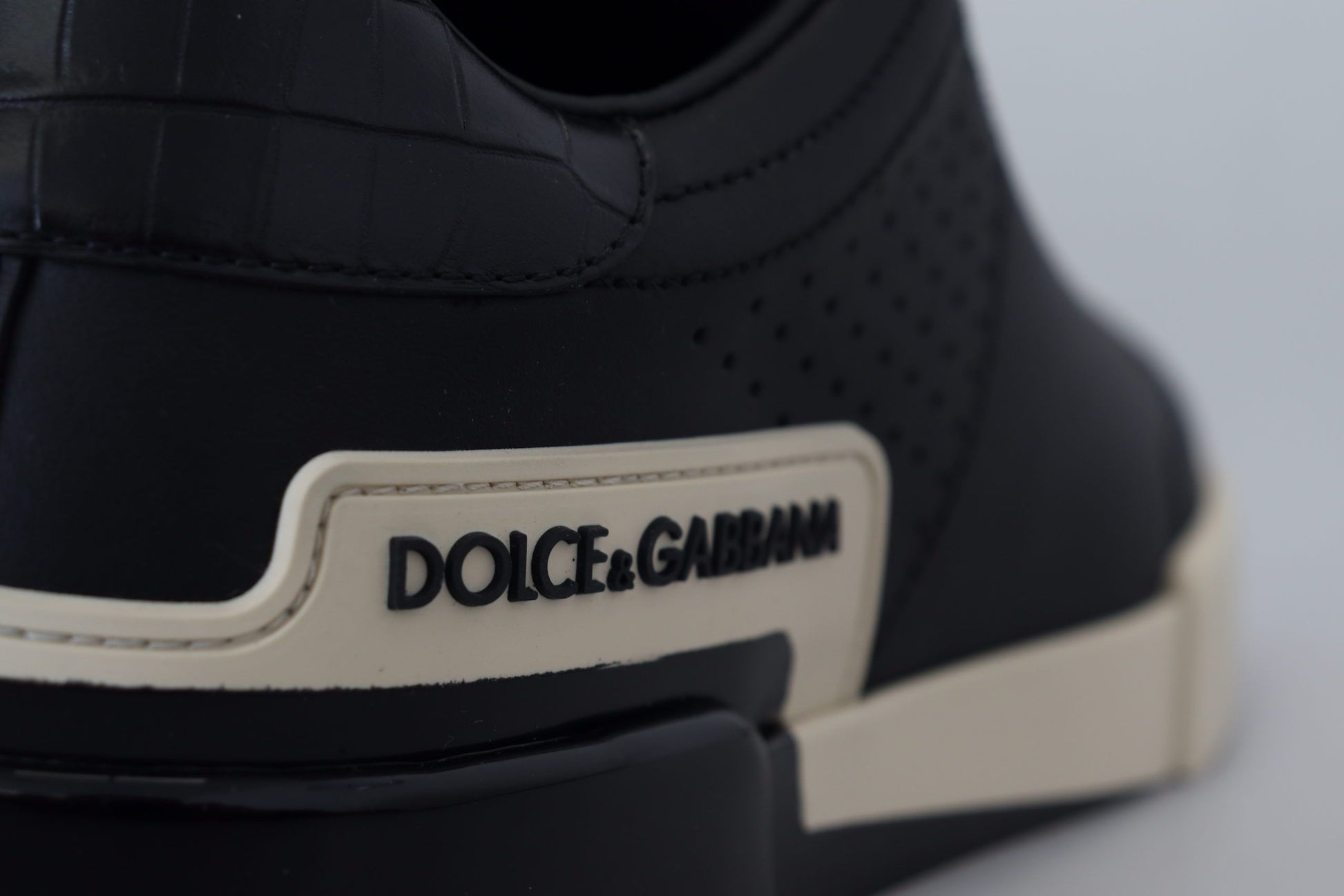 Step into luxury with these exquisite black and beige low-top sneakers from the prestigious Dolce & Gabbana. These brand-new shoes come with tags, ensuring the authenticity and excellence you expect from such a renowned label. Crafted with superb attention to detail, they feature a durable rubber sole adorned with the iconic logo, perfect for adding a touch of class to any casual ensemble.