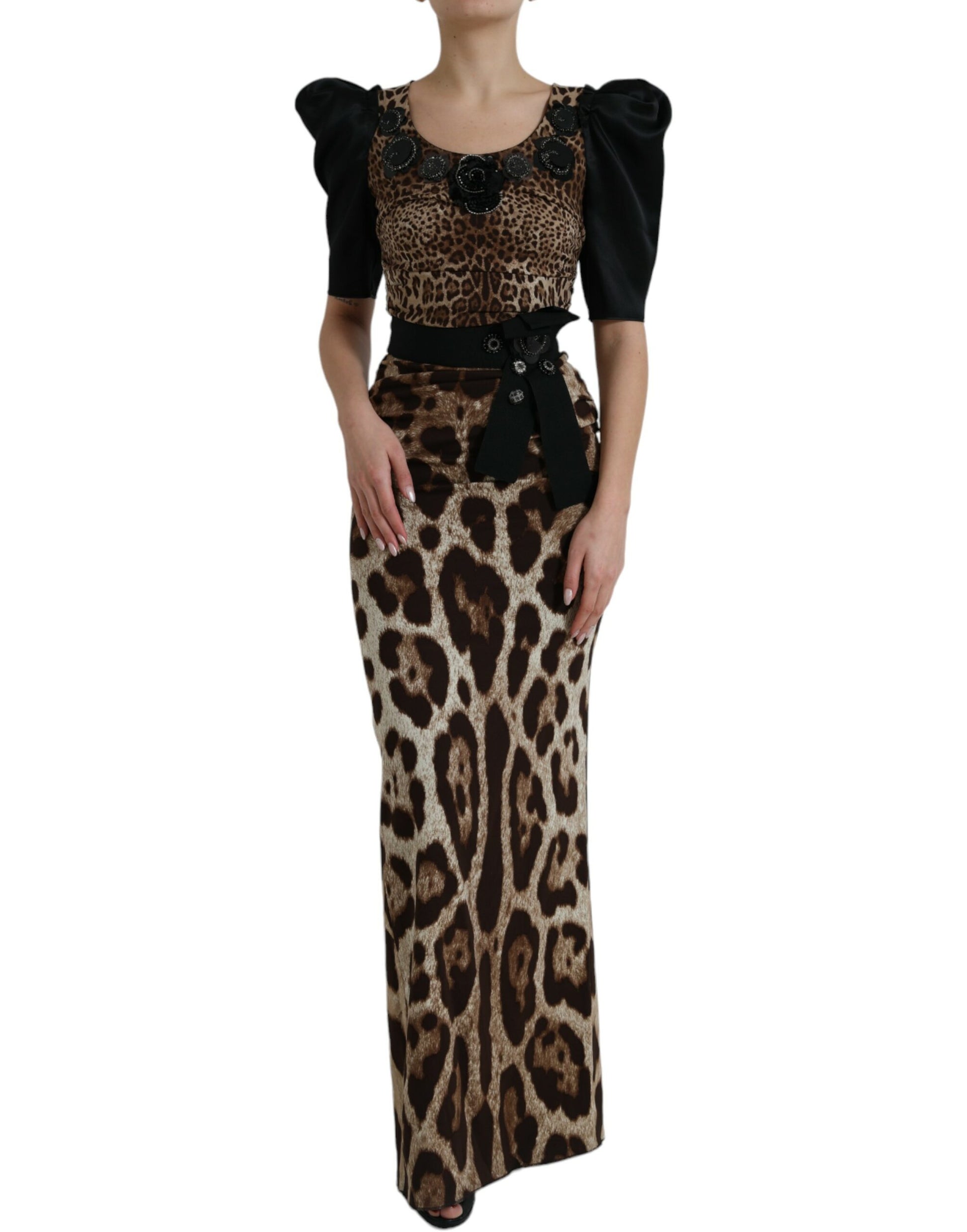 Gorgeous brand new with tags, 100% Authentic Dolce & Gabbana long dress. Made of silk. Embellished leopard print. It also features an embellished belted waist.