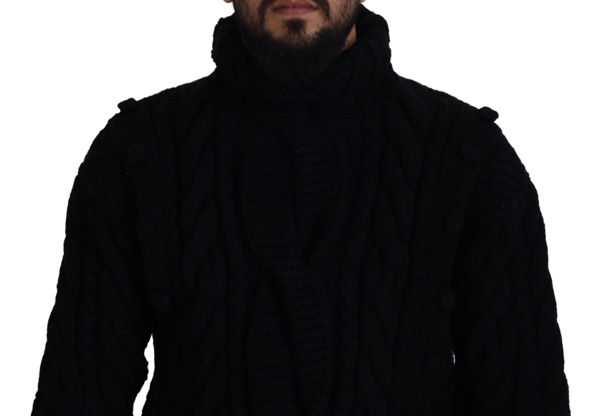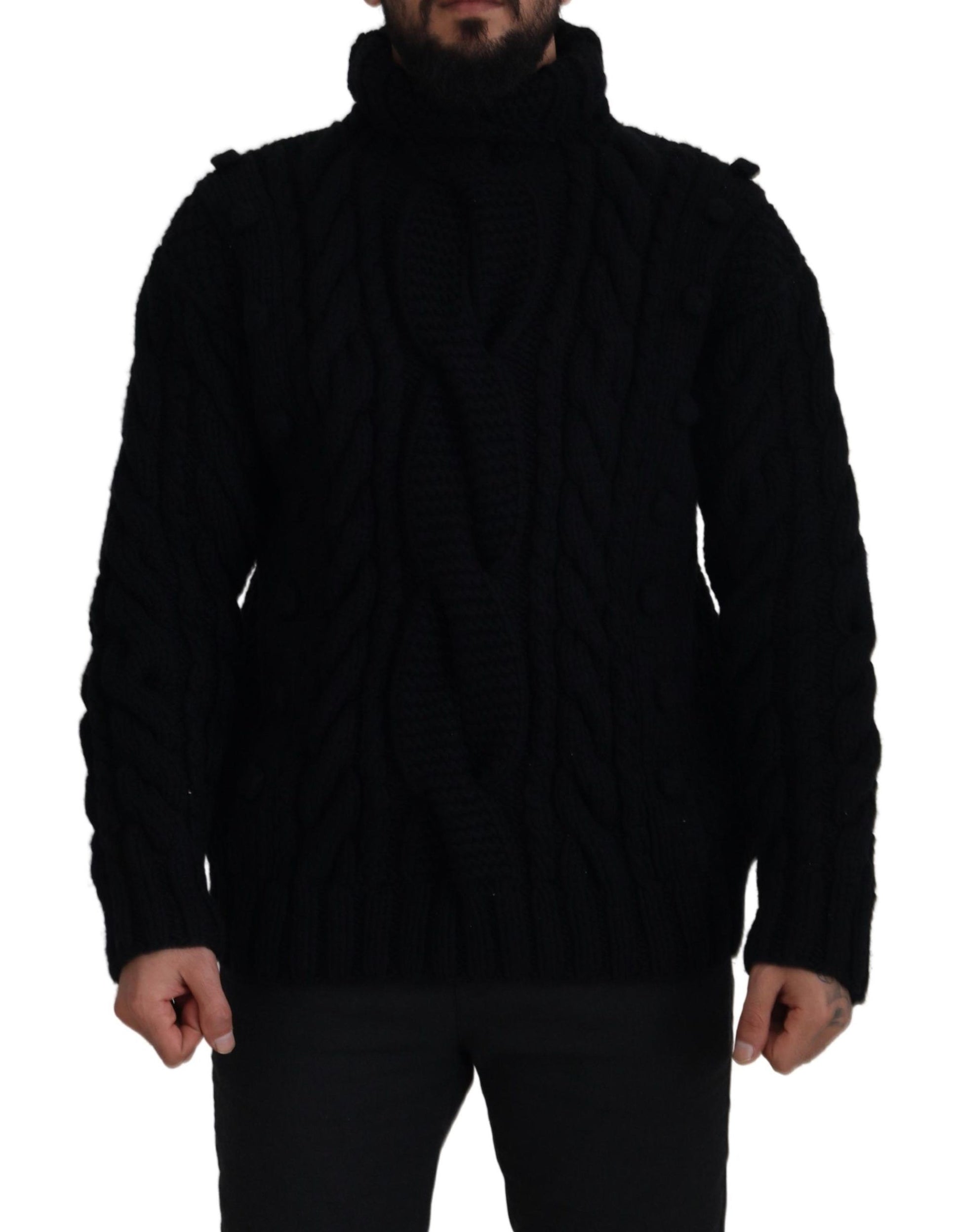 Indulge in the epitome of luxury with this stunning 100% Authentic cashmere turtleneck sweater from Dolce & Gabbana. Perfect for any sophisticated wardrobe, this pullover exudes elegance with its sleek black hue and subtle logo details. Crafted in Italy, it promises unparalleled quality and comfort.