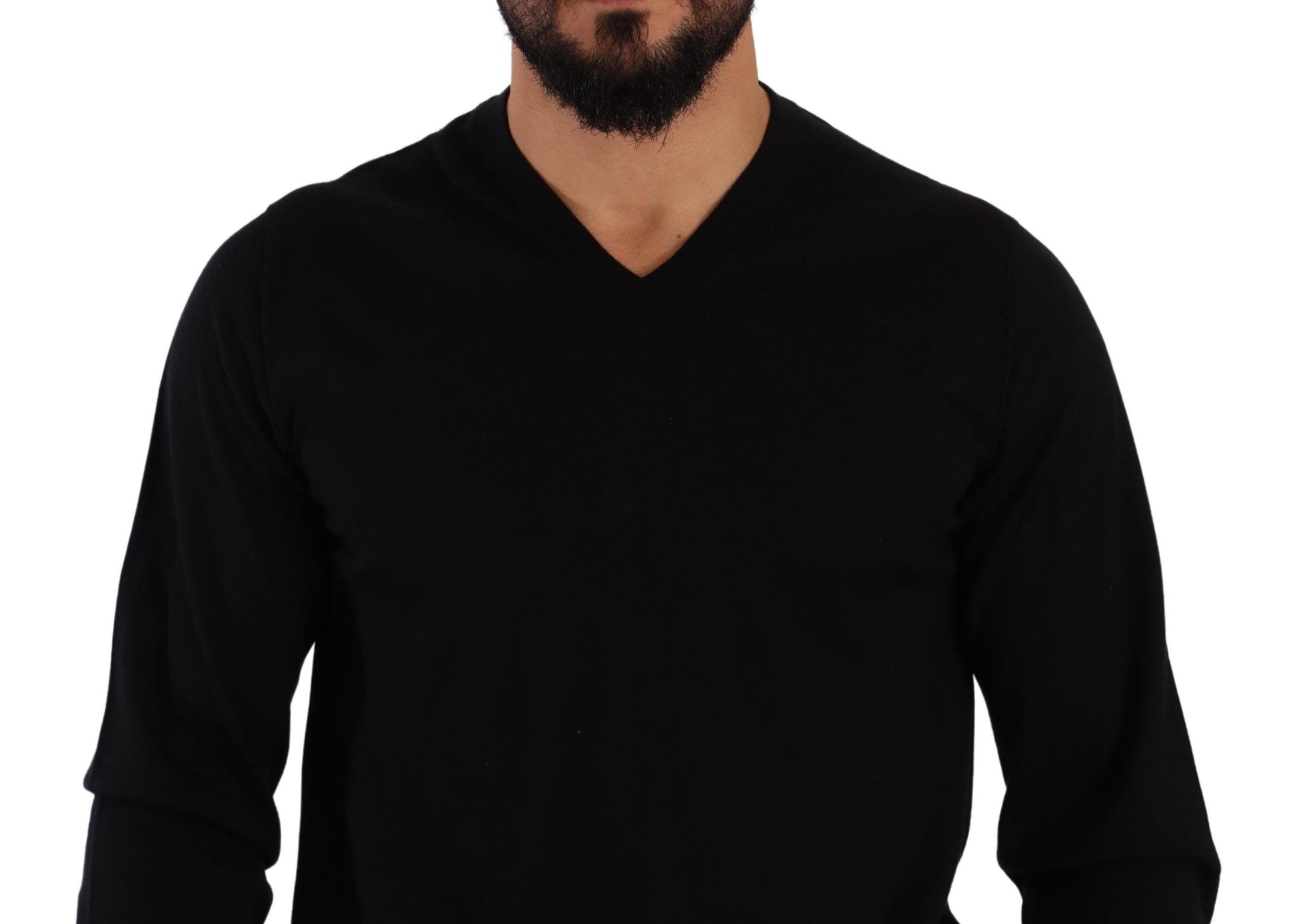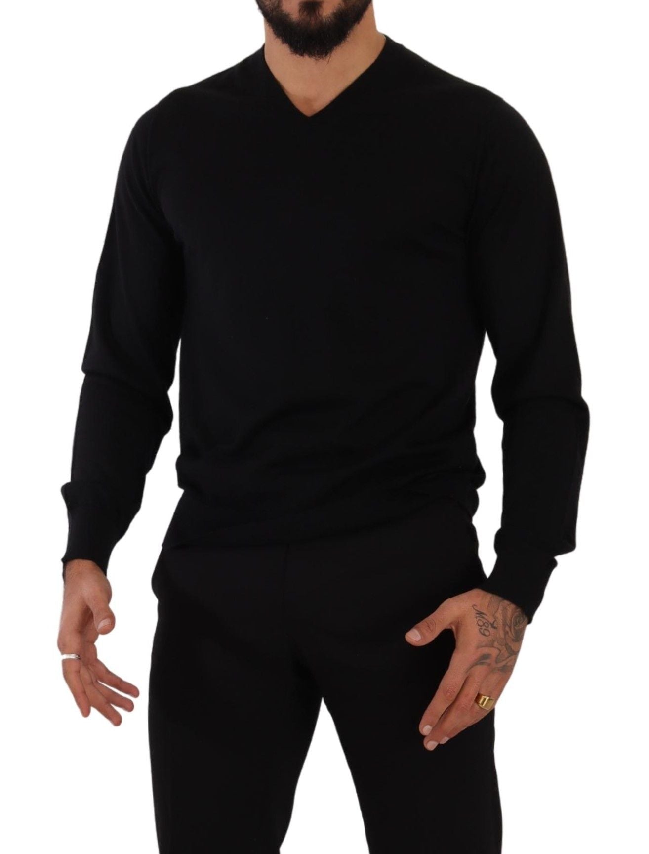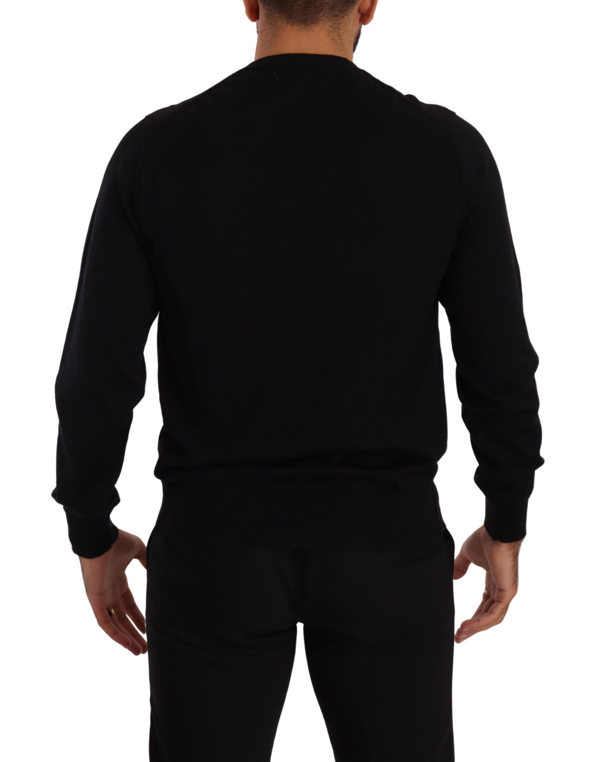 Indulge in the epitome of sophistication with this luxurious 100% authentic cashmere pullover sweater from Dolce & Gabbana. Its exquisite craftsmanship is evident in the comfortable fit and the attention to detail. The classic v-neckline is complemented by a rib-knit waistband and cuffs, making it an essential addition to your wardrobe. Whether you’re dressing up for a night out or simply elevating your everyday style, this black sweater symbolizes elegance and quality.