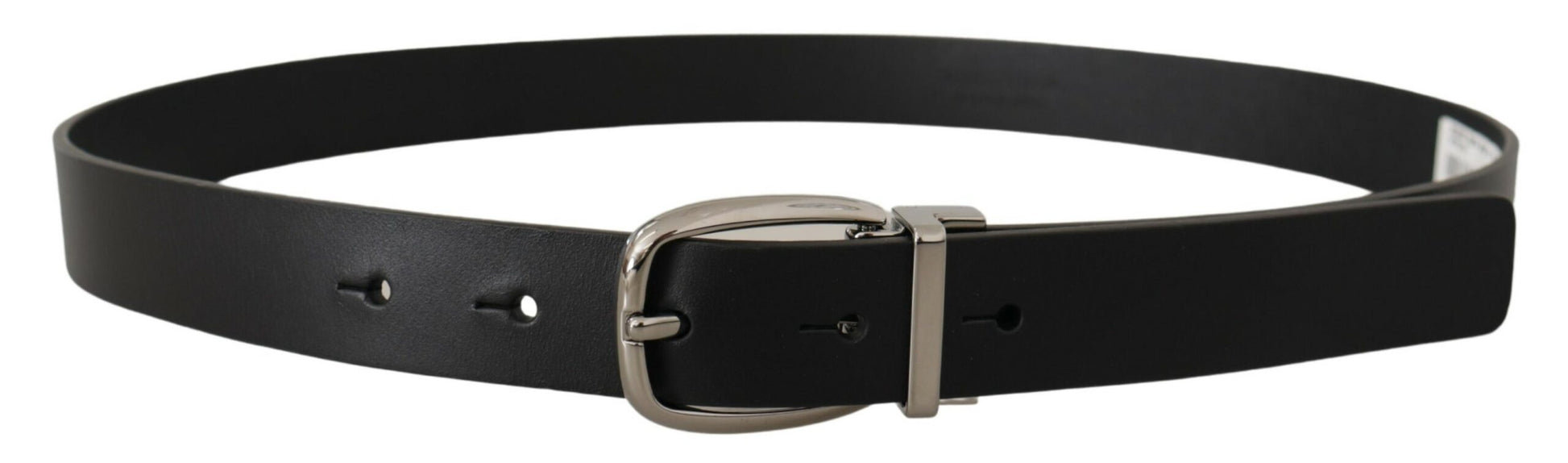 Step into the realm of sophistication with this stunning, 100% Authentic Dolce & Gabbana black leather belt. It’s the perfect accessory to elevate any outfit, crafted from high-quality calf leather and secured with an exquisite silver tone buckle closure. This eye-catching belt is not just a utility; it’s a statement full of character, reflecting the luxurious Italian craftsmanship that Dolce & Gabbana is renowned for.