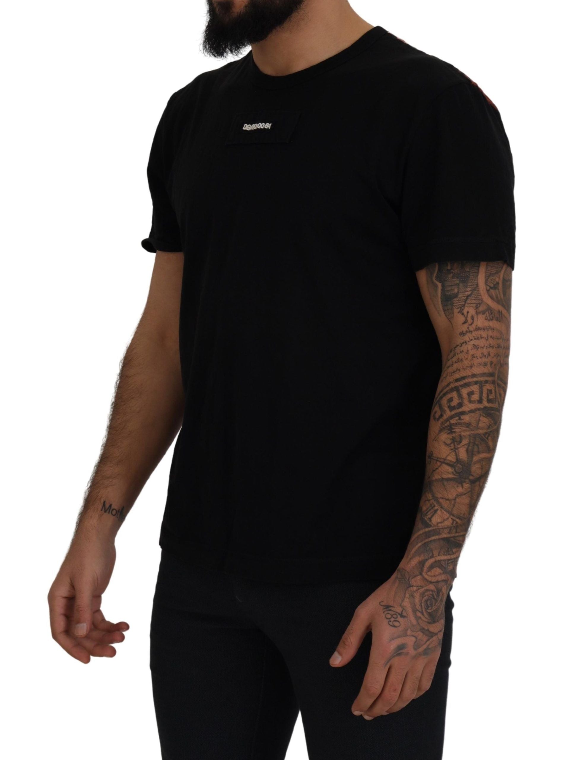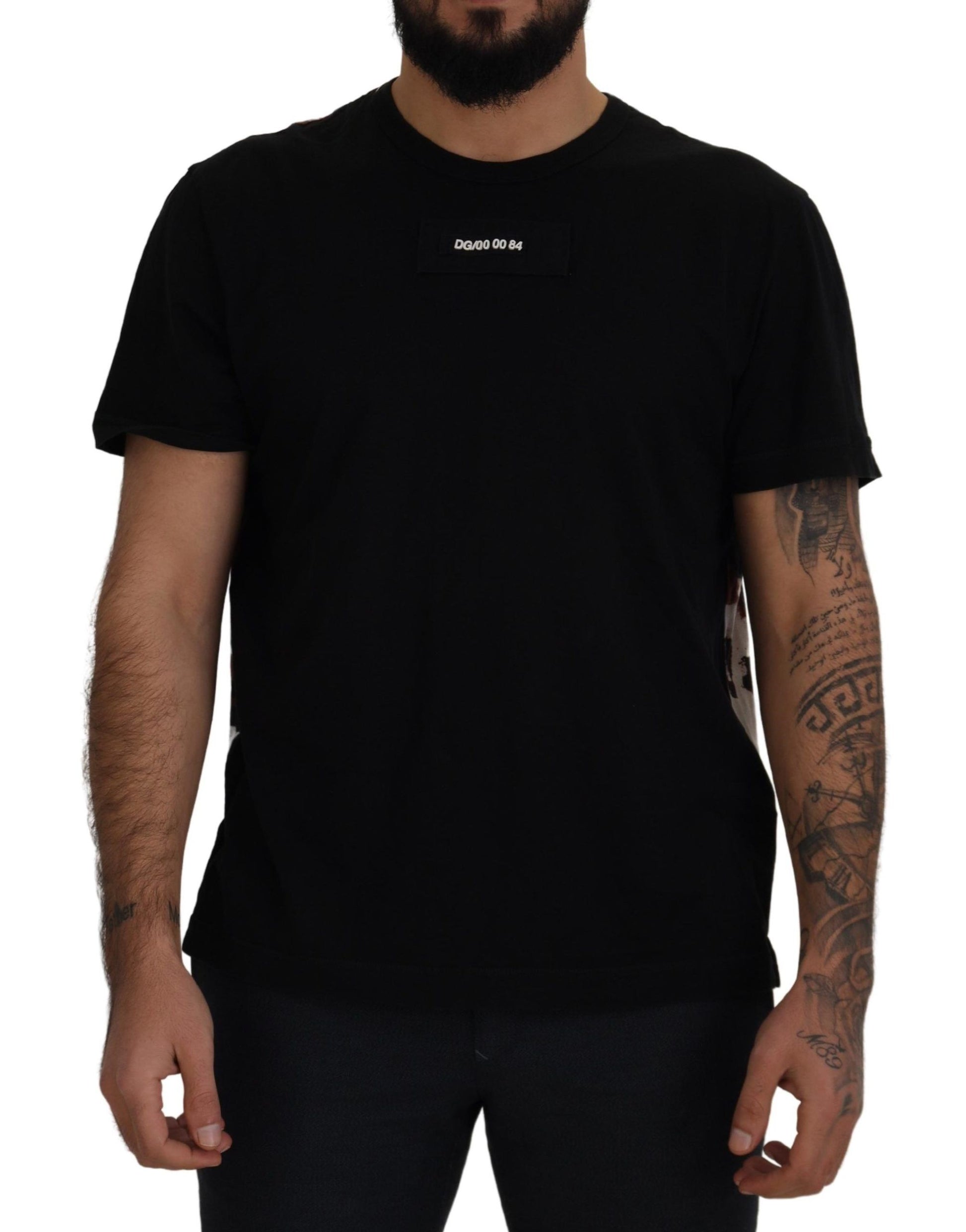 Experience the luxury of Italian craftsmanship with this Dolce & Gabbana t-shirt. This exquisite piece features a distinct camouflage print back and an eye-catching logo patch that epitomizes style. Tailored from a high-quality cotton blend, this t-shirt provides both comfort and a regular fit, making it a versatile addition to your wardrobe. It comes in a sleek black hue that pairs effortlessly with any outfit.