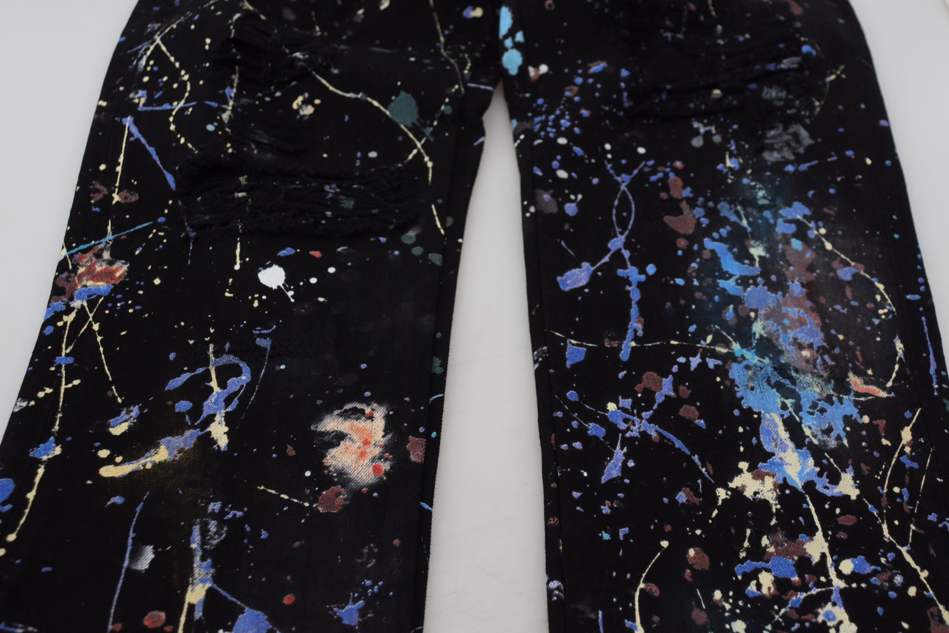 Indulge in the epitome of Italian craftsmanship with these exquisite, brand new Dolce & Gabbana jeans. The vibrant color splash print brings a bold statement to your wardrobe, while the pure cotton material offers supreme comfort. Complete with a sleek black hue and meticulous logo details, these jeans are the quintessence of luxury and style—even the zipper closure is crafted with the utmost attention to detail. Perfect for those who appreciate the finer things in life, these pants are made in Italy, assuring quality and authenticity.
