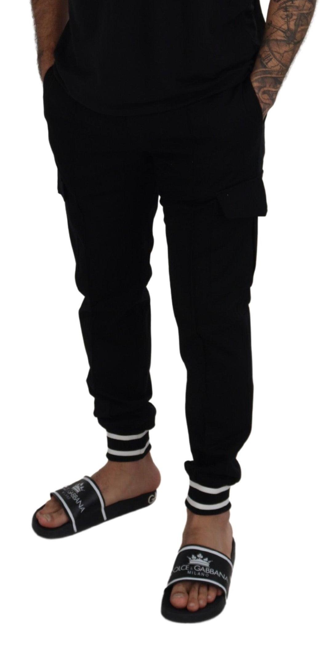 Embrace effortless sophistication with Dolce & Gabbana’s striking black jogger pants, a testament to impeccable Italian craftsmanship. Perfect for those who seek both comfort and style in luxury fashion. These brand new pants come equipped with distinctive logo details, ensuring you stand out with every wear.