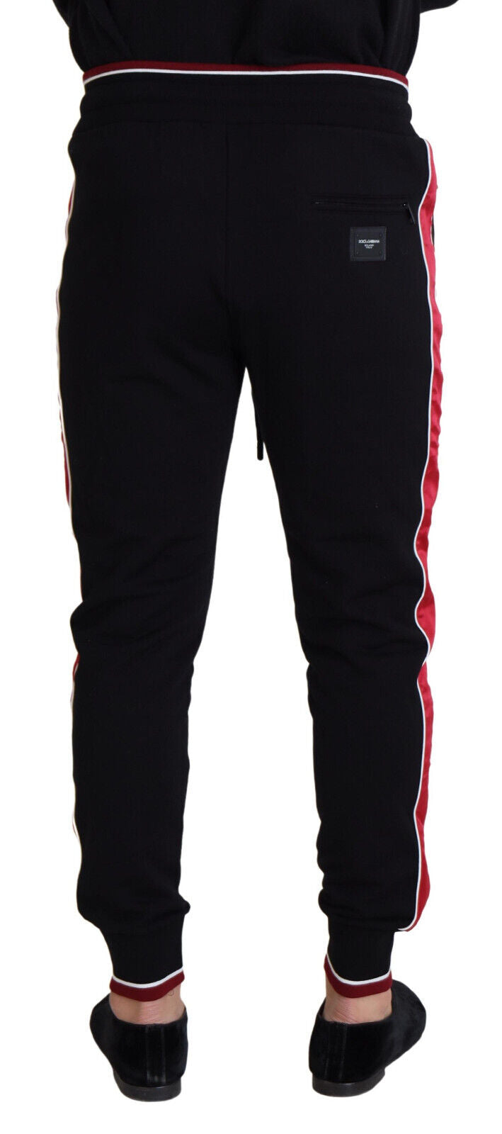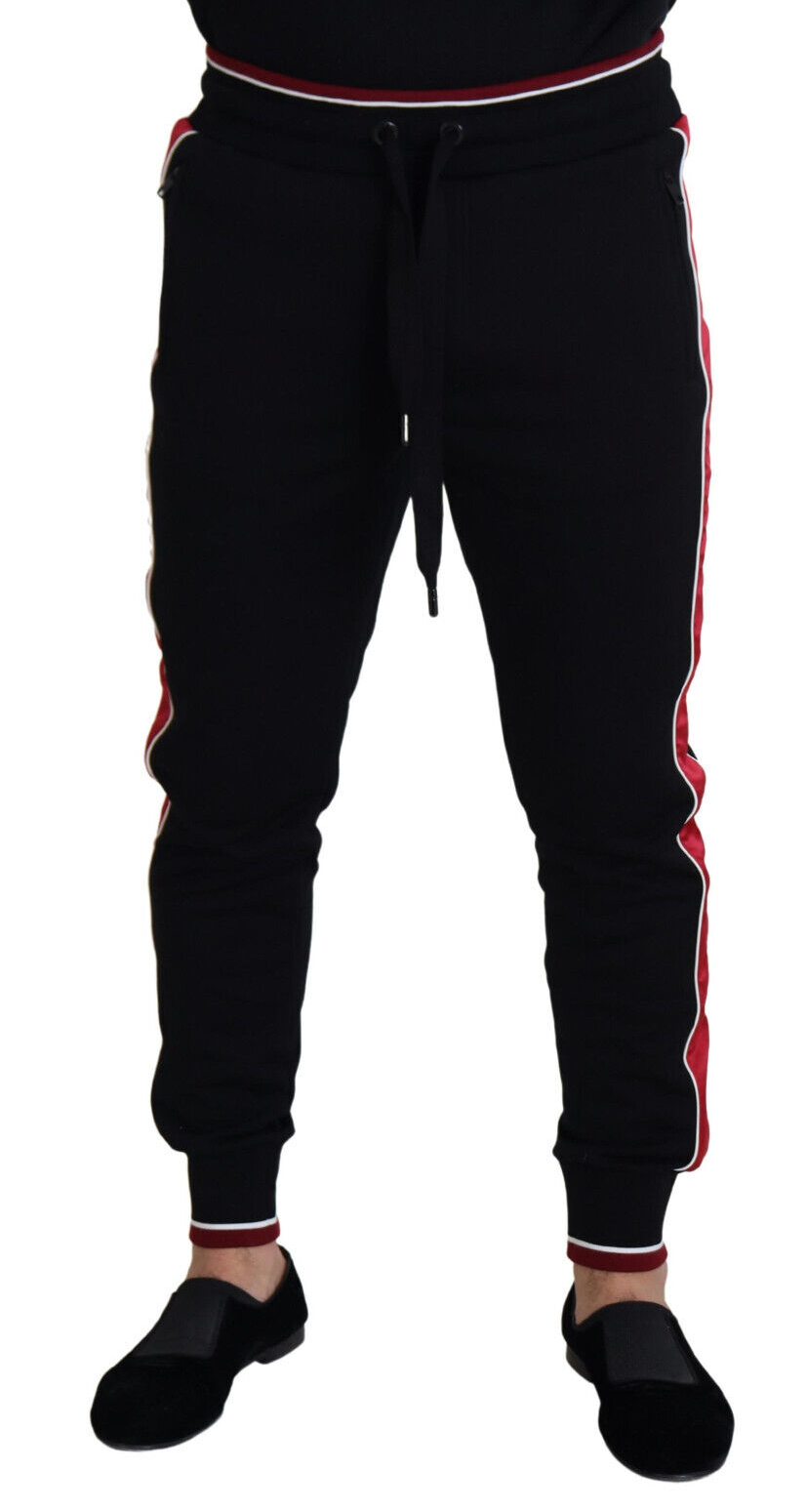 Step out in style with these exceptional Dolce & Gabbana sweatpants, perfect for adding a touch of luxury to your casual wardrobe. Boasting a sleek black color complemented by striking red detailing, these joggers offer both comfort and high-end design, making them a truly versatile addition. The regular fit and elastic waistband ensure a snug and adjustable fit, while the multiple zippered pockets provide practical storage for your essentials. Crafted with superb craftsmanship in Italy, these pants evoke exclusivity and finesse. Experience the blend of high fashion and relaxation with these must-have Dolce & Gabbana joggers.