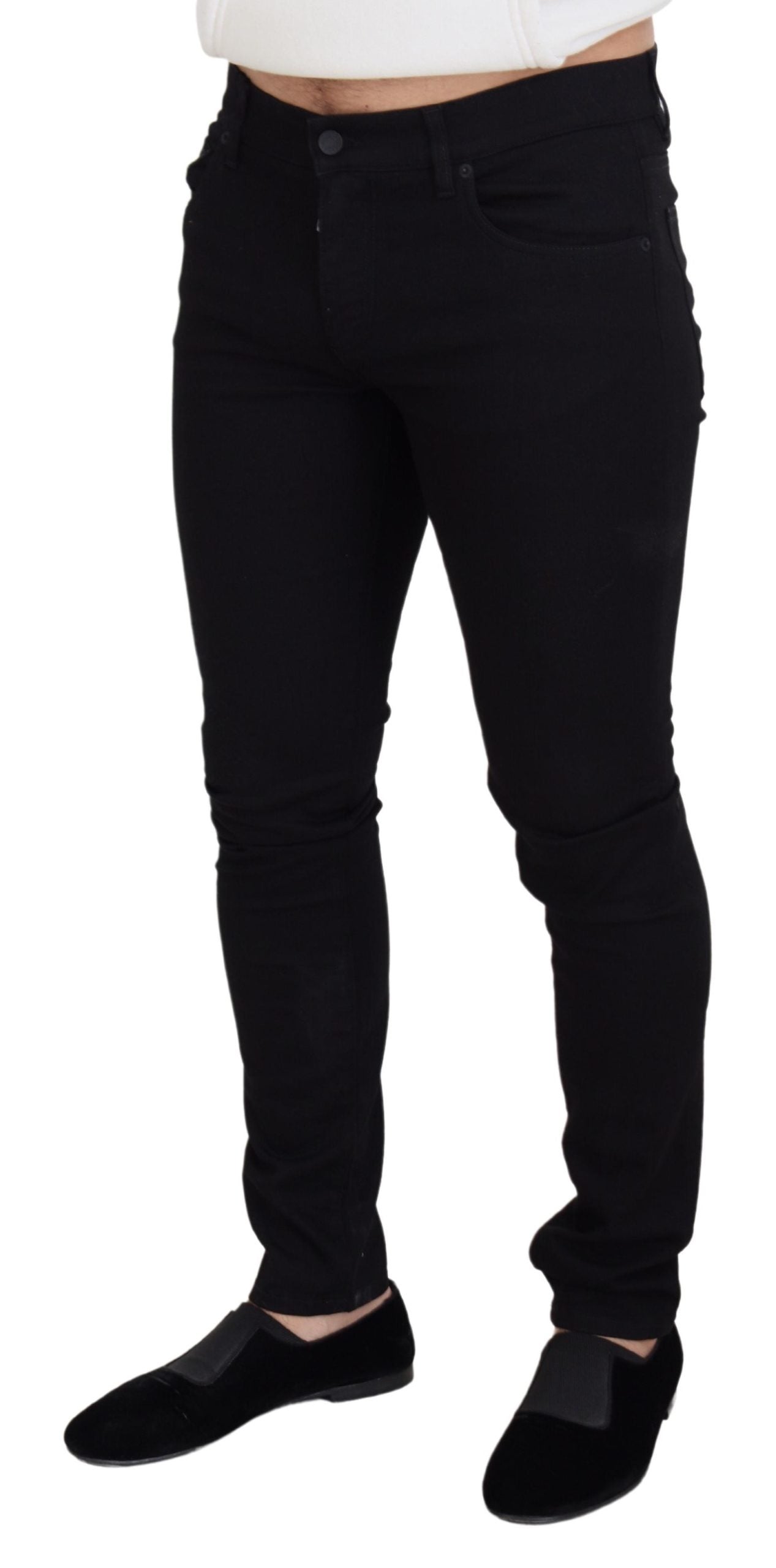Step into style with these exquisite black denim pants, a true representation of high-fashion craftsmanship. Fresh from the latest collection and adorned with signature details, these jeans are the epitome of luxury casual wear. Expertly tailored for an impeccable fit, they are the perfect addition to the modern man’s wardrobe.