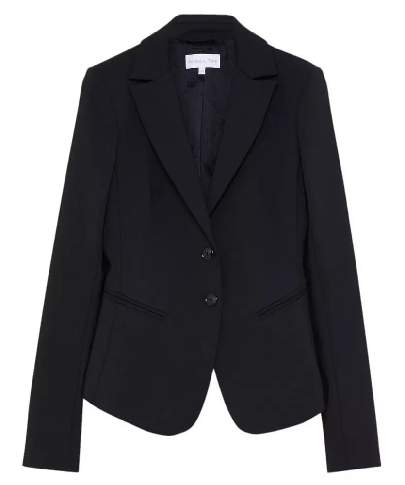 Experience the epitome of tailored sophistication with this chic black blazer jacket. Designed with a perfect blend of cotton, polyamide, and a touch of elastane, it offers a seamless balance of comfort and style. The jacket features two practical front pockets and a dual-button closure to ensure a secure and flattering fit. An internal lining provides additional structure, while subtle internal lurex details add a touch of glamour. Crafted with care in Italy, this blazer is an essential piece for your professional wardrobe.