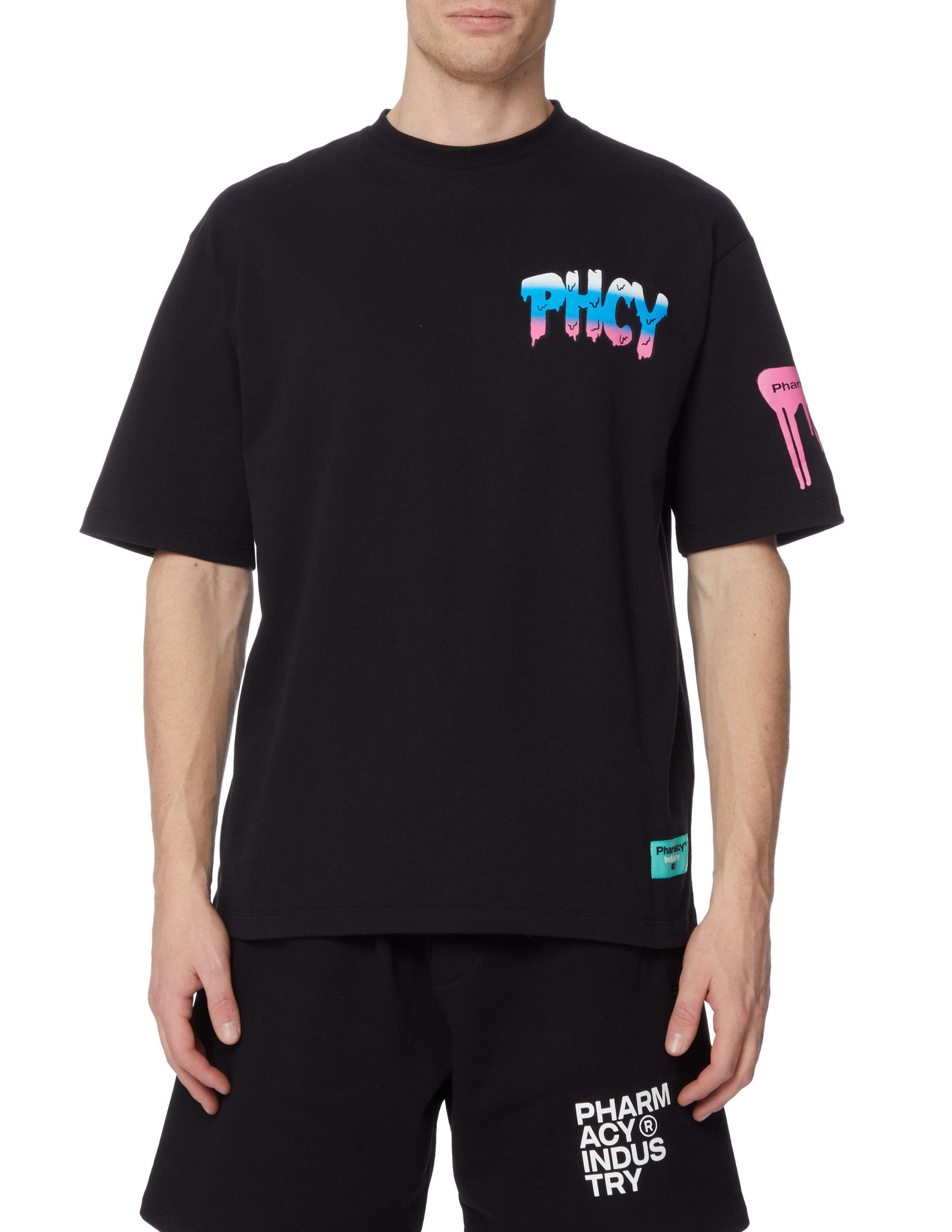Infuse a touch of Italian elegance into your wardrobe with this sleek black t-shirt featuring a bold logo print on the front and a captivating graphic design on the back. Crafted with the finest 100% cotton, this tee ensures both comfort and style for any casual or trendy ensemble. Embrace the ‘Made in Italy’ essence with this fashion-forward piece.
