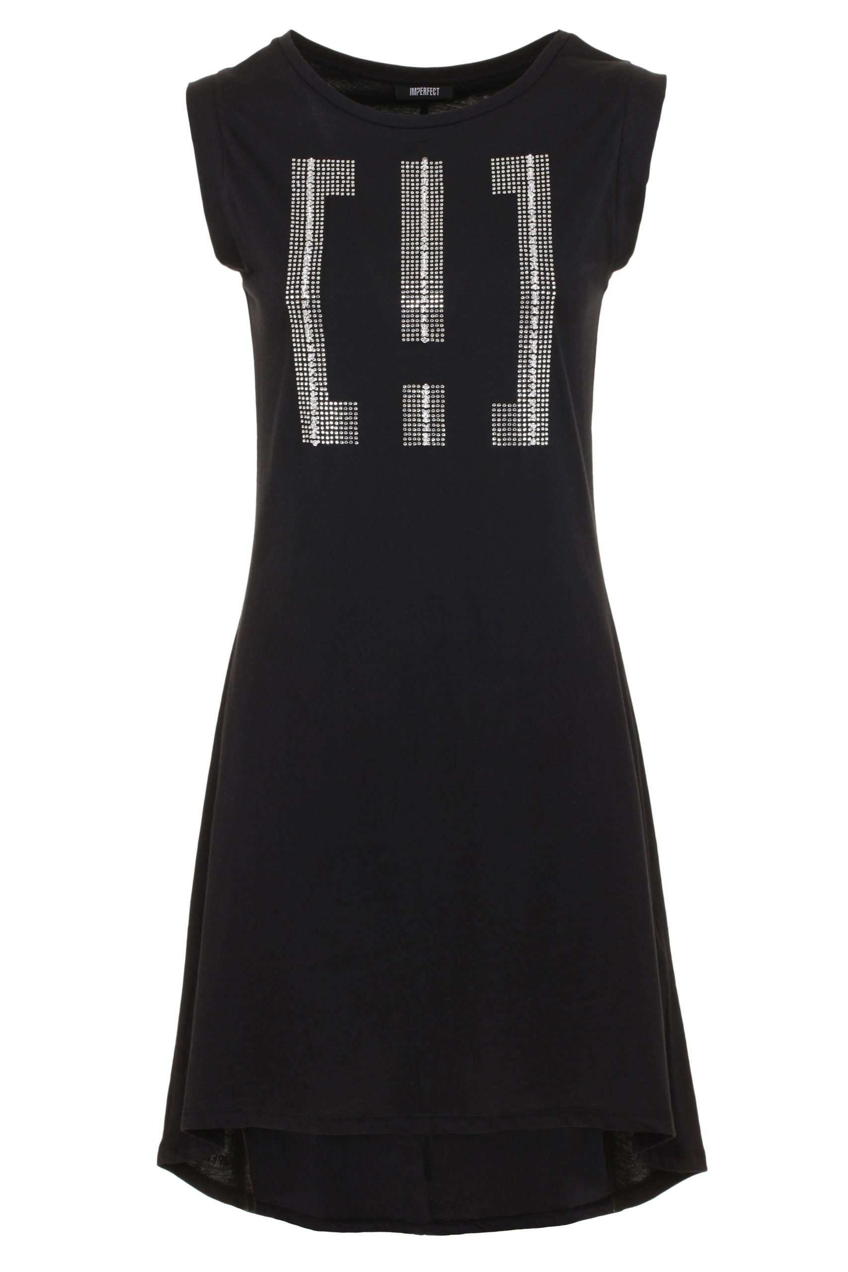 Discover the understated elegance of this black dress featuring the distinct logo of Imperfect. Perfect for a sleek, minimalist wardrobe, this piece is designed for the fashion-forward individual who values style and comfort.
